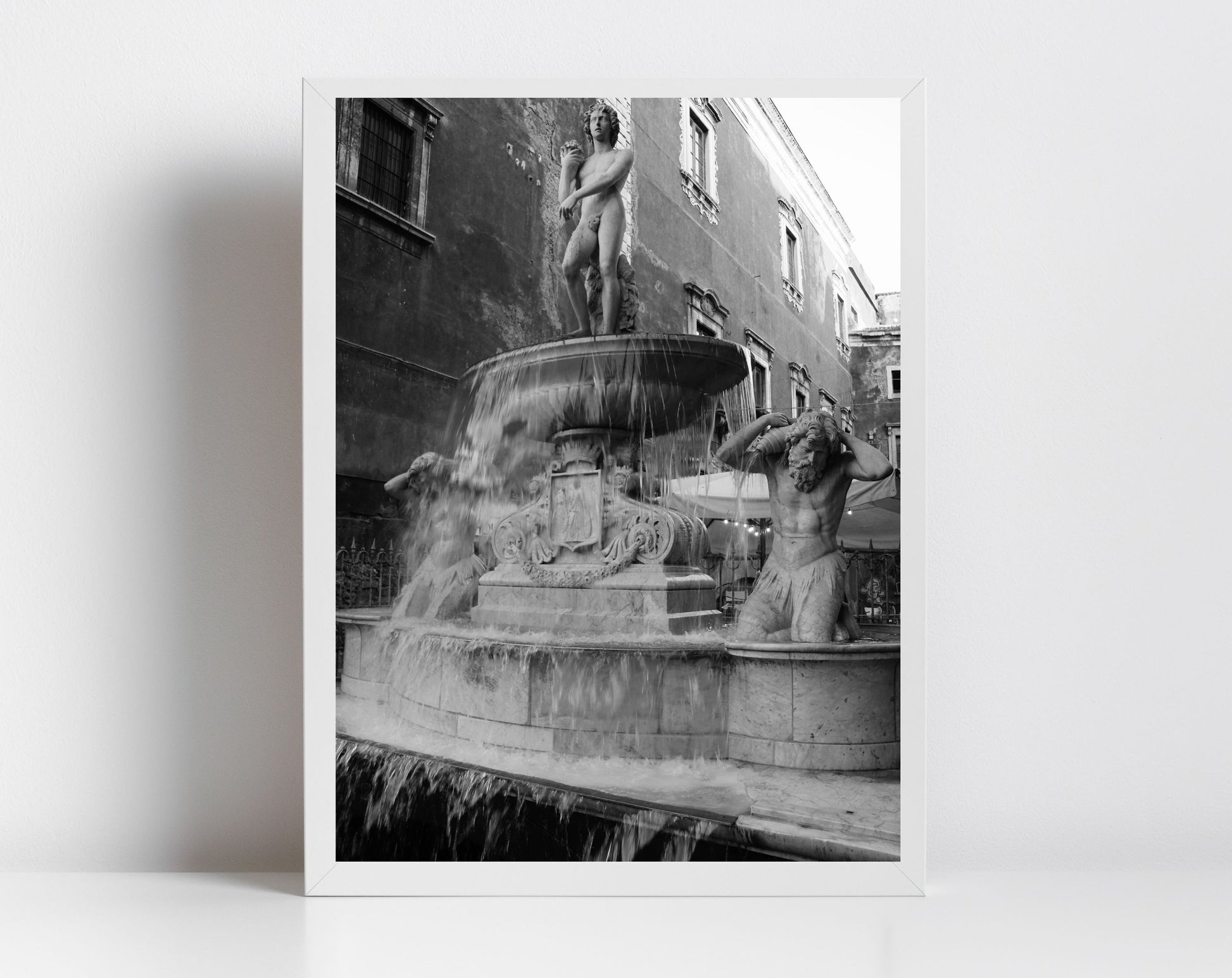 Amenano Fountain Catania Sicily Black And White Photography Poster Italy Wall Art