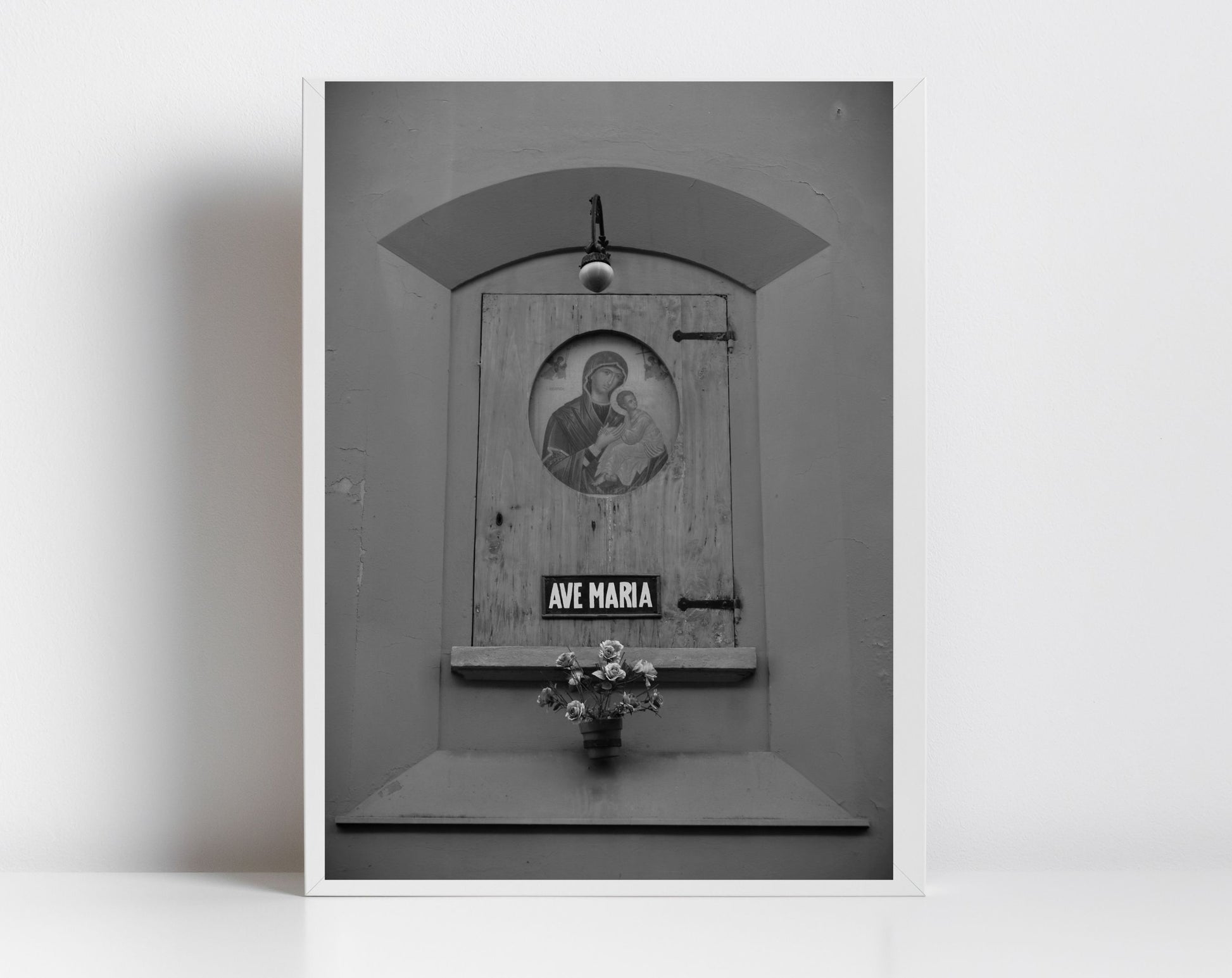 Religious shrines to the Virgin Mary, also known as Madonnelle or altarini, are prevalent throughout Italy, cropping up on street corners and city walls. This striking Madonnelle in Bologna is painted in the trademark burnt orange of the city's buildings and a pot of fresh flowers has been placed before it in tribute.