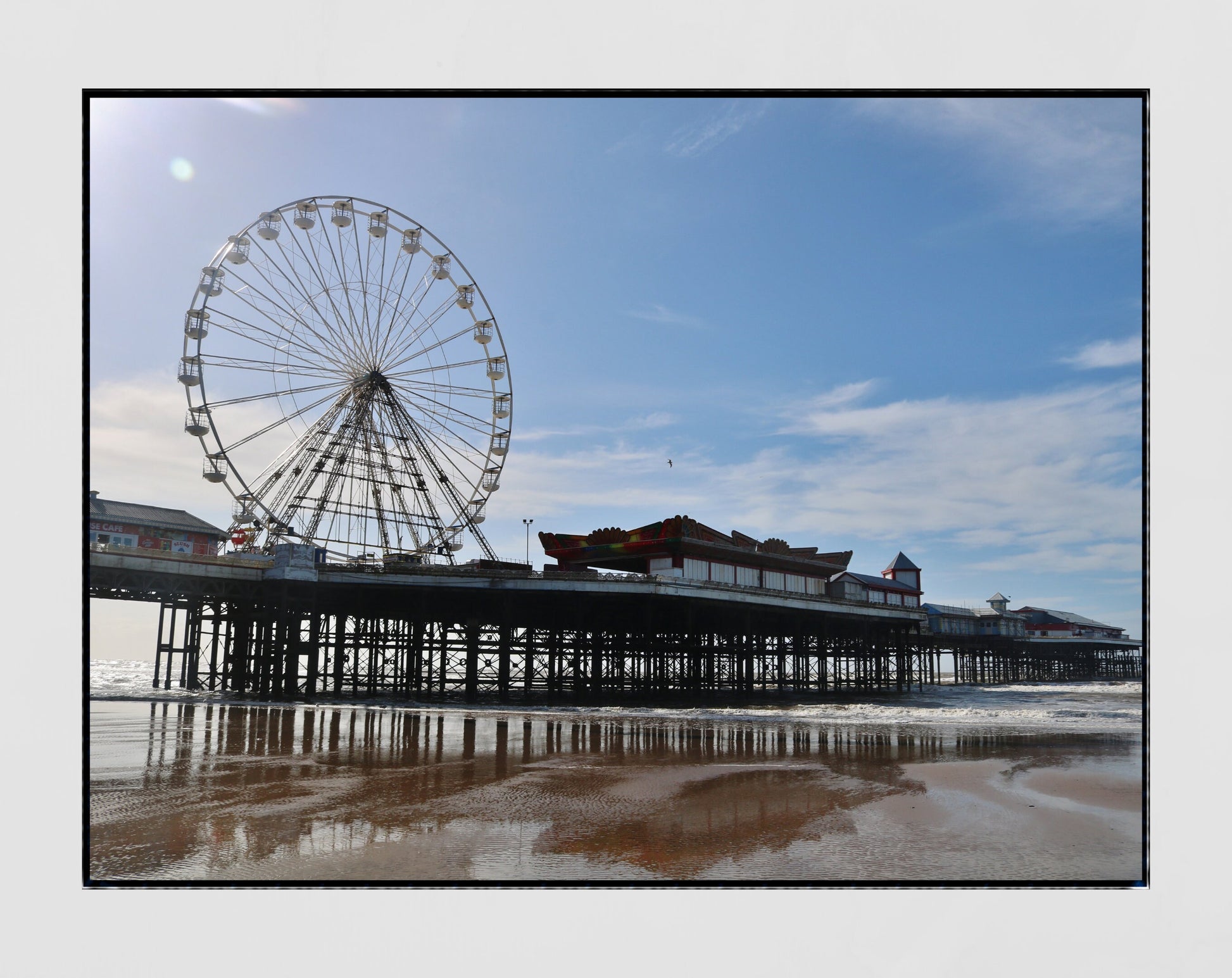 This photography print shows Central Pier in Blackpool. It is available in a variety of sizes, from small to extra large, and is striking displayed on its own or as part of a gallery wall.