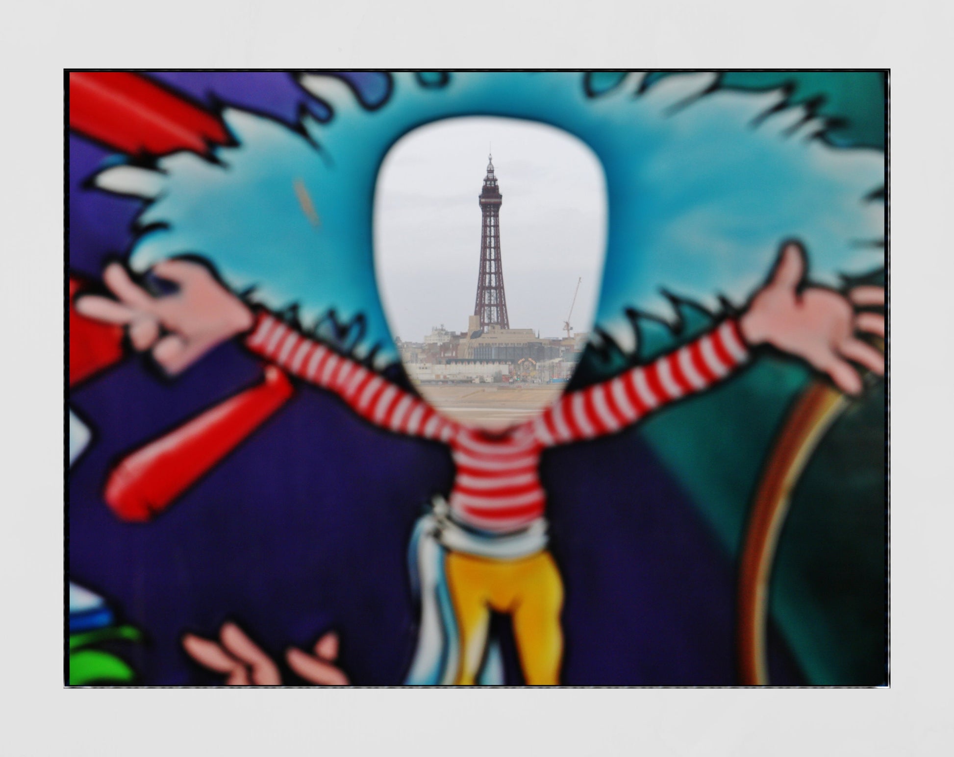 This photography print shows Blackpool Tower framed by a cut out on South Pier. It is available in a variety of sizes, from small to extra large, and is striking displayed on its own or as part of a gallery wall.