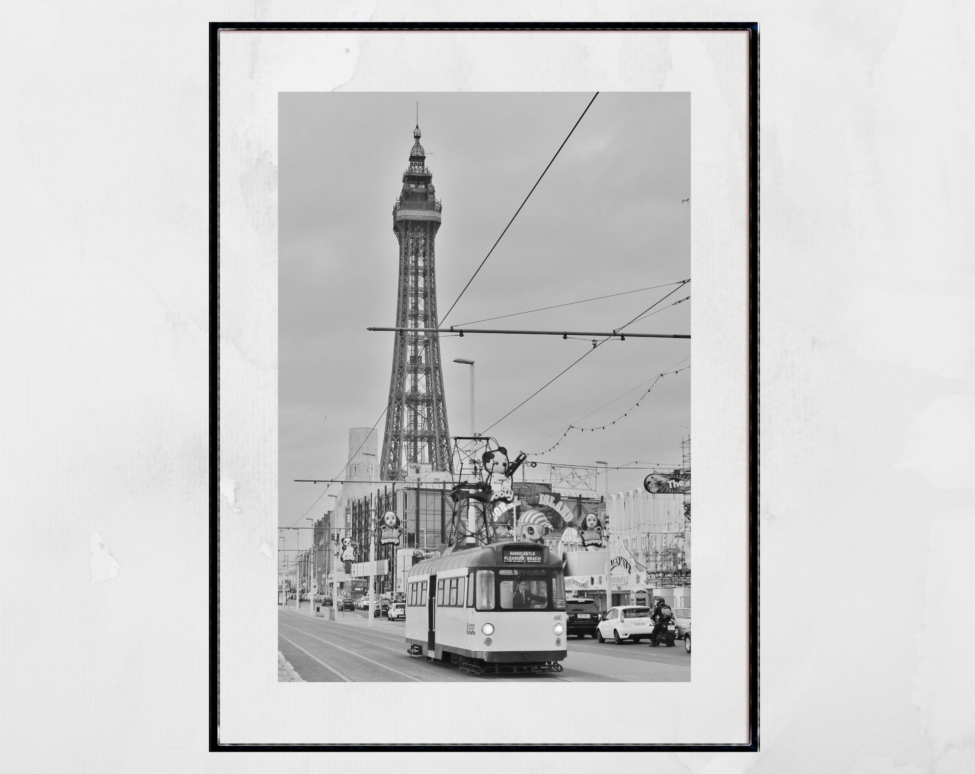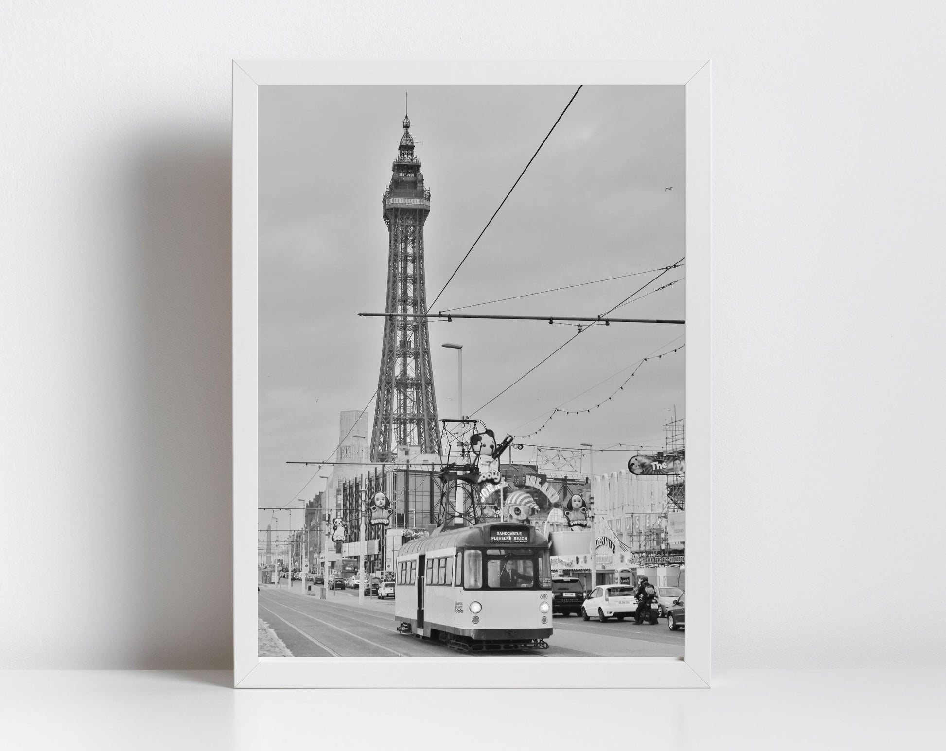 Blackpool Photography Print Blackpool Tower Tram Black And White Poster