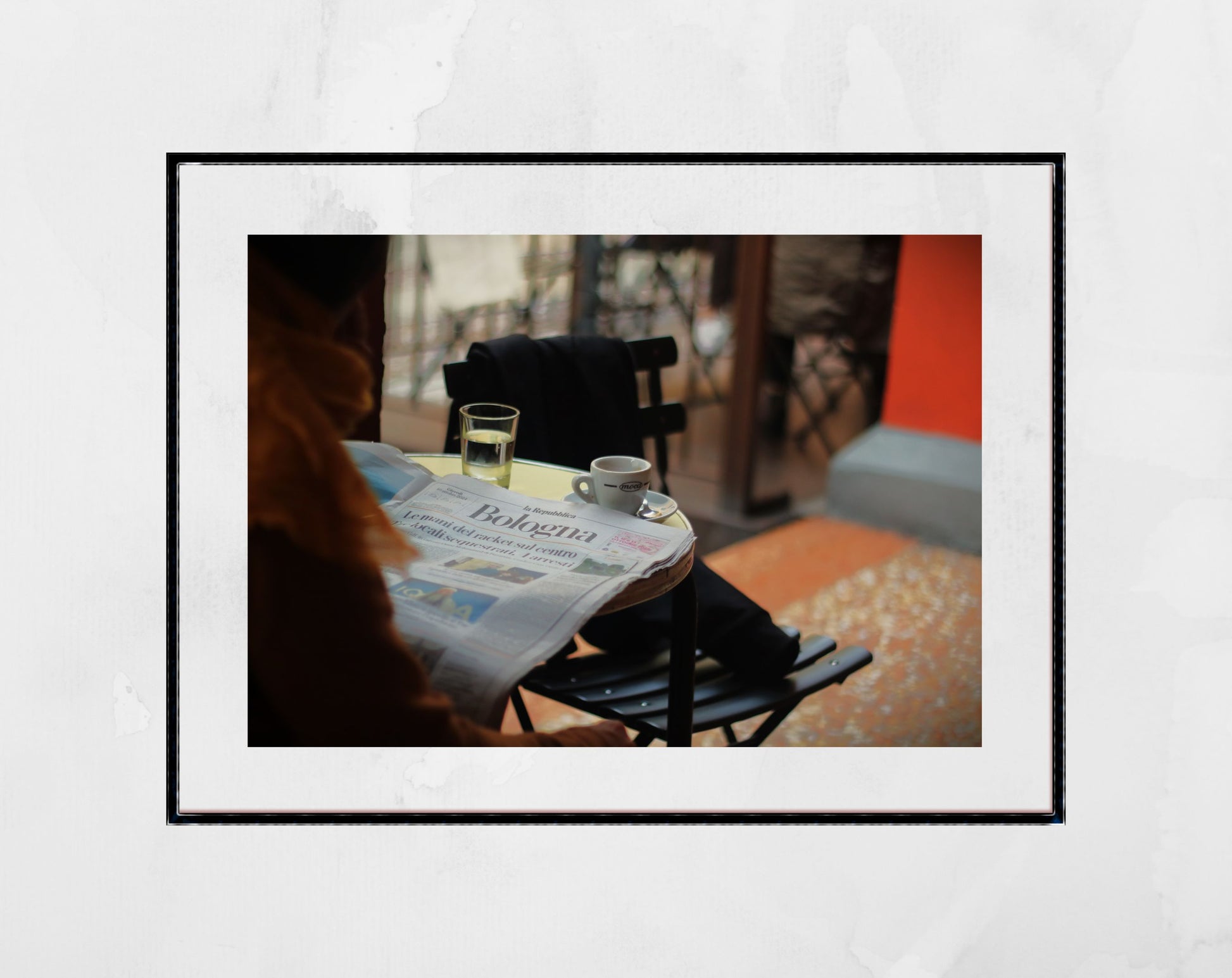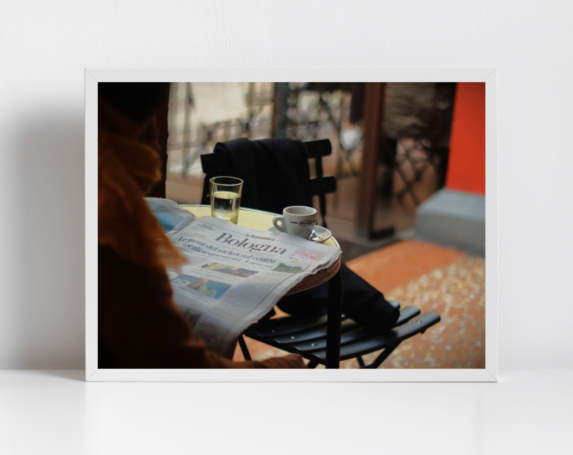 Sometimes when you visit a new place you find a street that makes you think "this is MY street," a street that despite exploring the length and breadth of the city, you return to again and again. A street that is the travel equivalent of taking off your boots at the door of your home at the end of a long day. In the Italian city of Bologna, Via Del Pratello was that street for us. Why, specifically, we can't put our finger on - it was certainly charming, with unpretentious cafes and dining spots, a narrow road mostly populated with cyclists, and buildings embellished with colourful murals. But more than that there was something tangible - like the street's soul felt like home. We took this photograph on Via Del Pratello showing someone in one of the outdoor tables of the bar Birrificio Barazzo reading an Italian newspaper, an empty espresso cup to hand.