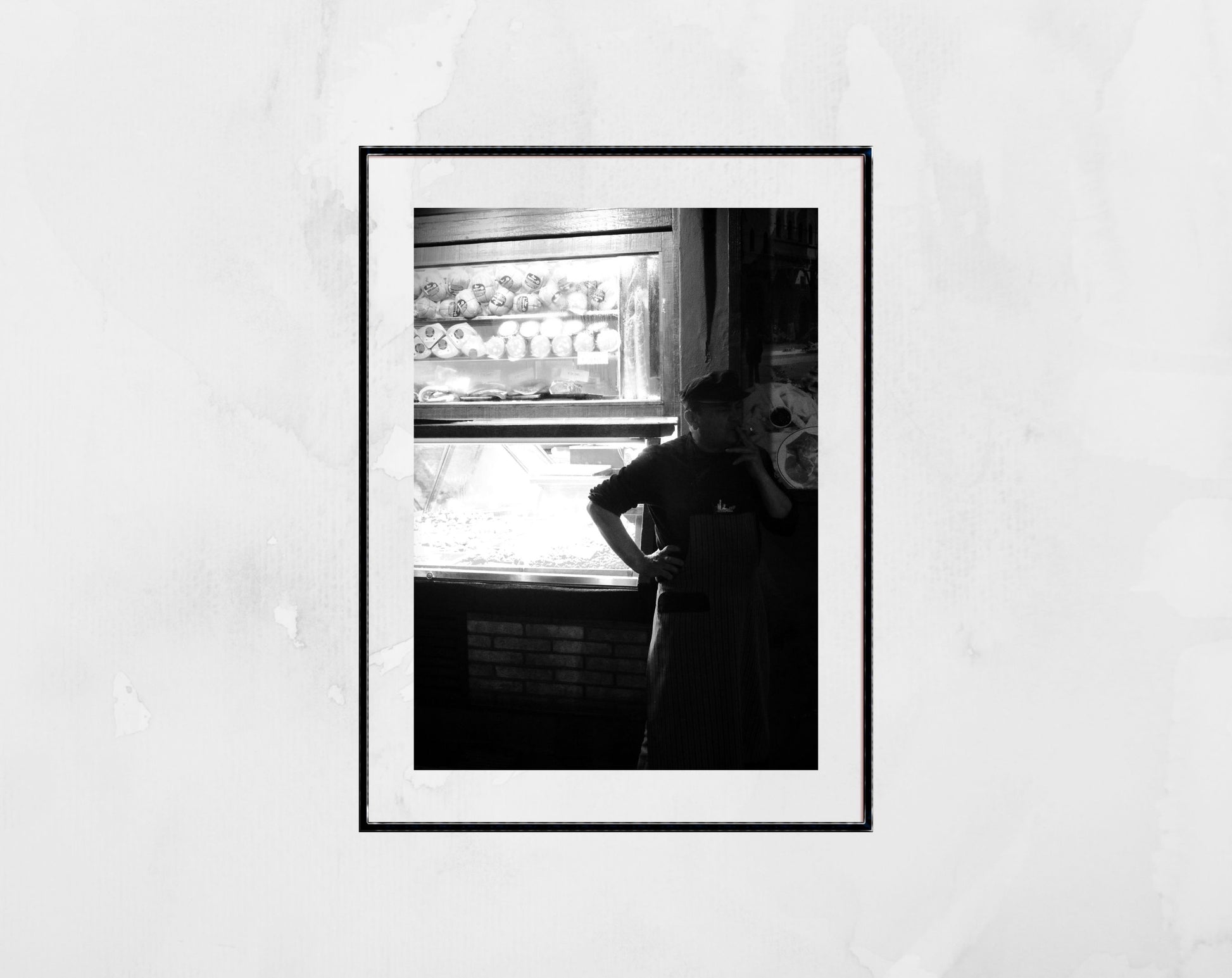 On a busy dark night in Bologna, Italy's premier foodie city, a delicatessen worker takes a cigarette break.