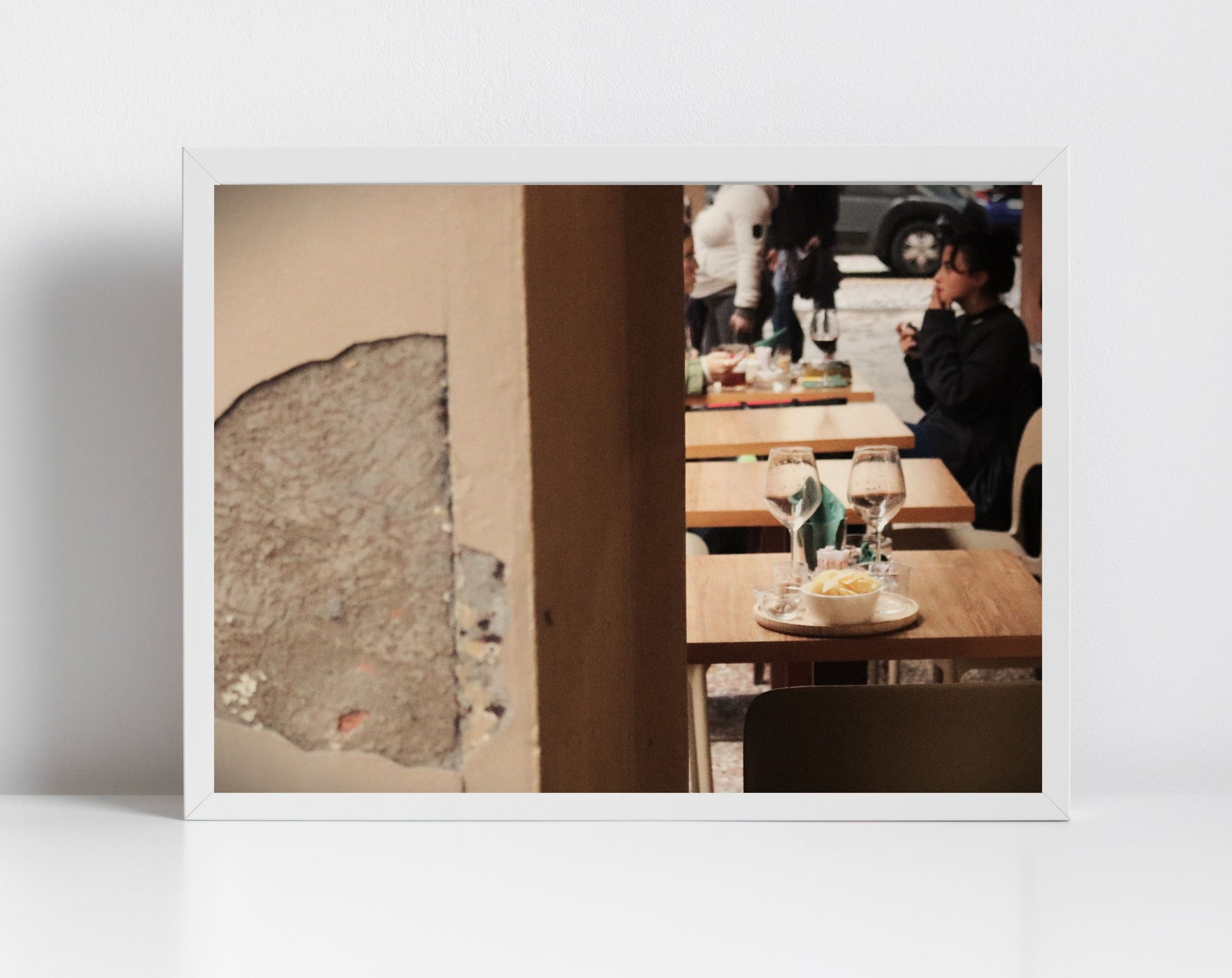 During our time in Bologna in 2024 we took a peek round a peeling portico in Via Zamboni and captured this photograph of students smoking and sipping glasses of wine, an urban snapshot of the city's student-filled university district.