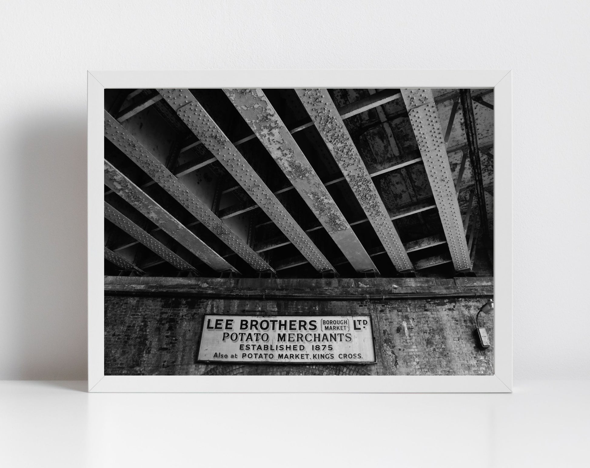A ghost sign for Lee Brothers Potato Merchants in London's Borough Market, one of the oldest and busiest food markets in the capital, dating back to at least 1014.