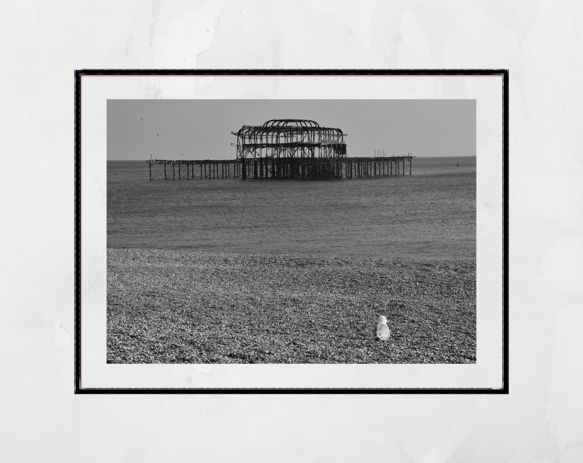 A ghostly metal framework is all that remains of Brighton West Pier which was opened in 1866, closed in 1975 and destroyed by storms and fire in the years that followed. Despite being only a skeleton of its former incarnation, it remains an icon of the British seaside city. In this Brighton Photography Print the West Pier is overseen by one of the city's unofficial guards (a seagull).