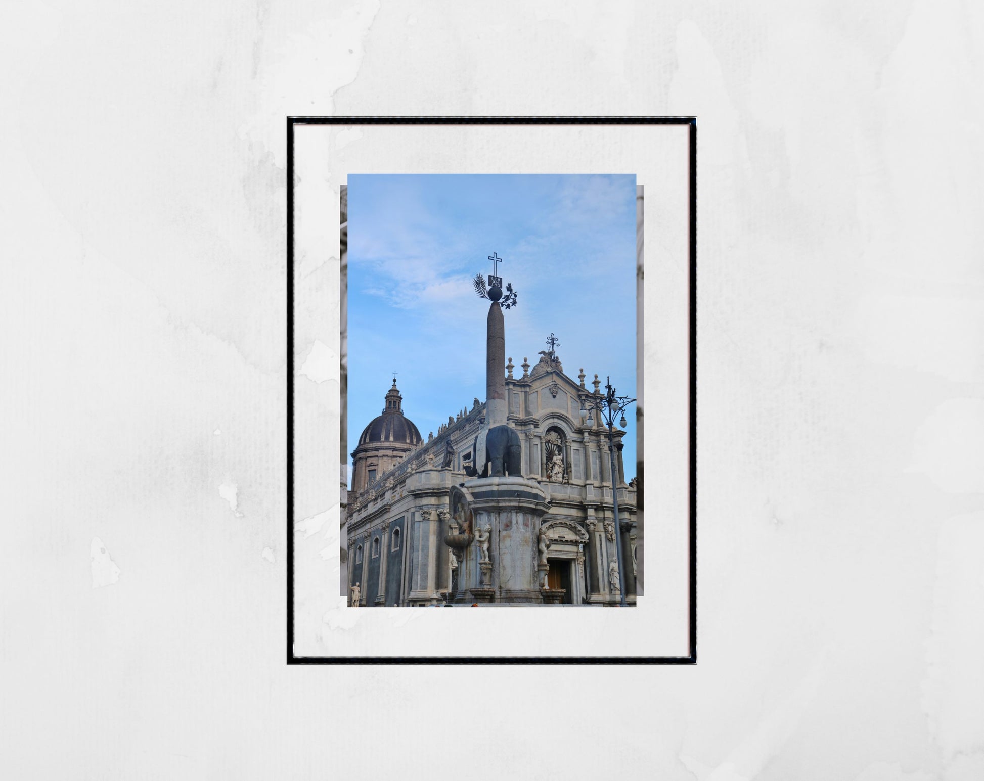 Piazza del Duomo in Sicily's Catania, featuring St Agatha's Cathedral and the Elephant Fountain, the elephant being the symbol of the city.