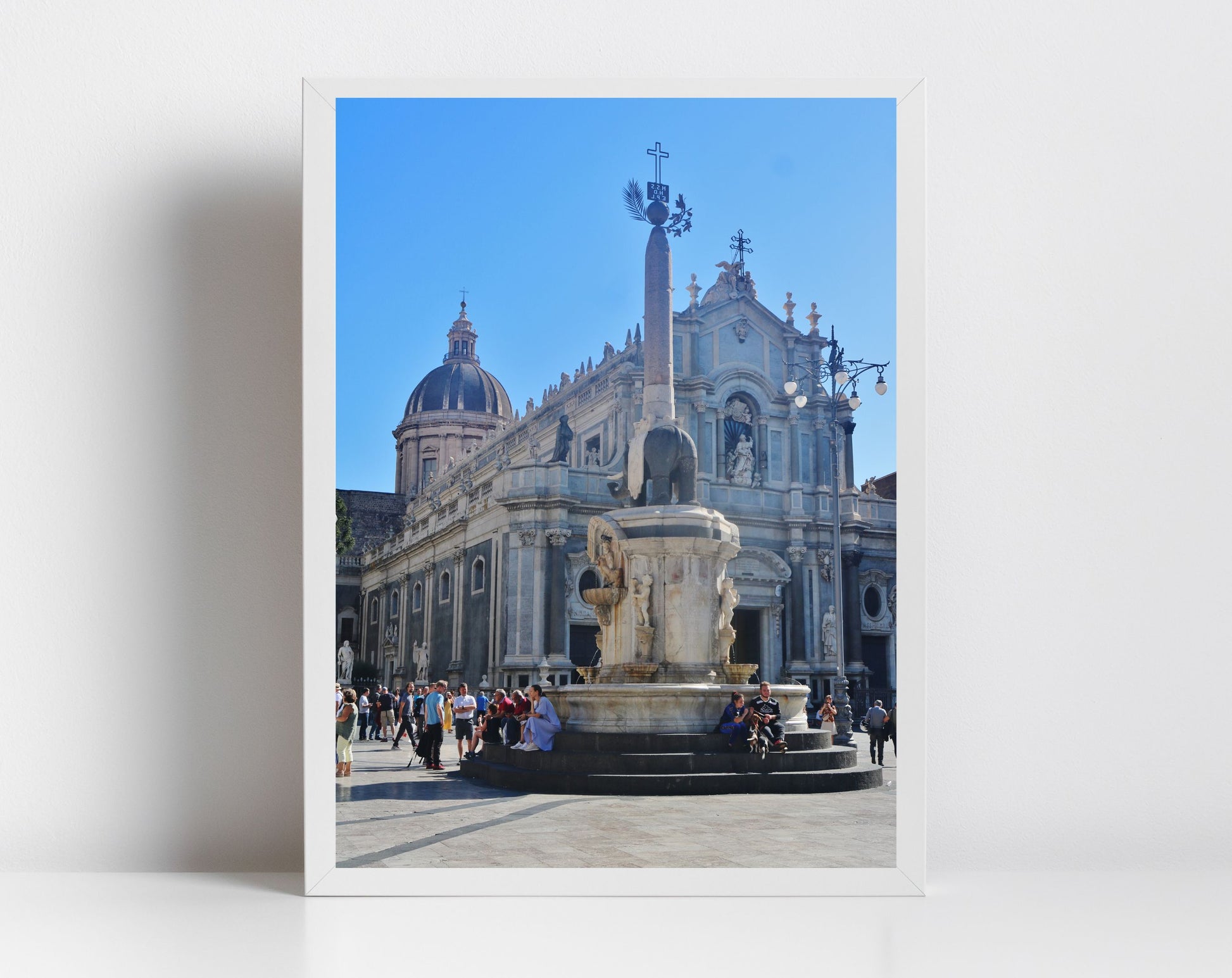 Piazza del Duomo in Sicily's Catania, featuring St Agatha's Cathedral and the Elephant Fountain, the elephant being the symbol of the city.