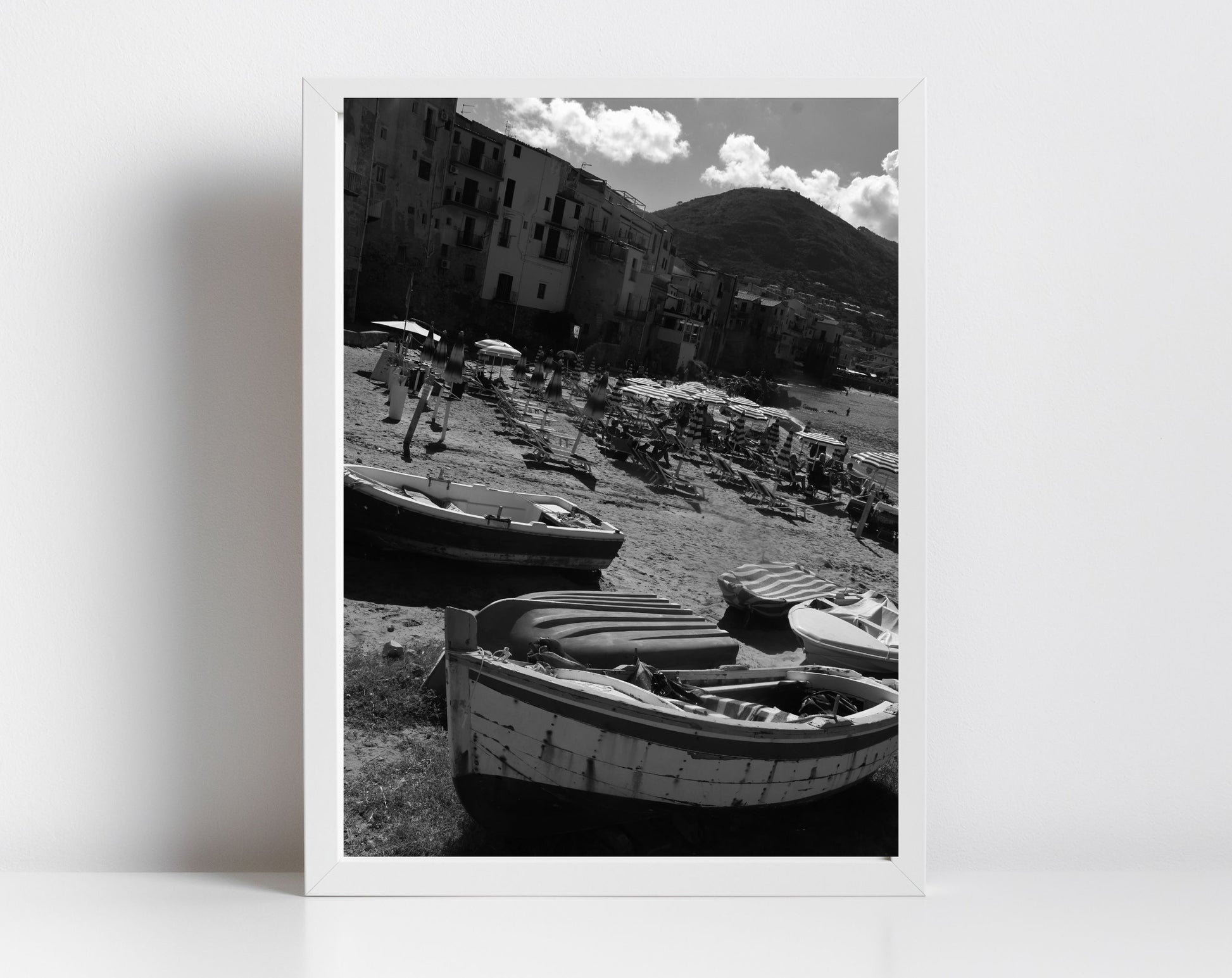 Cefalù Sicily Black And White Photography Boat Print