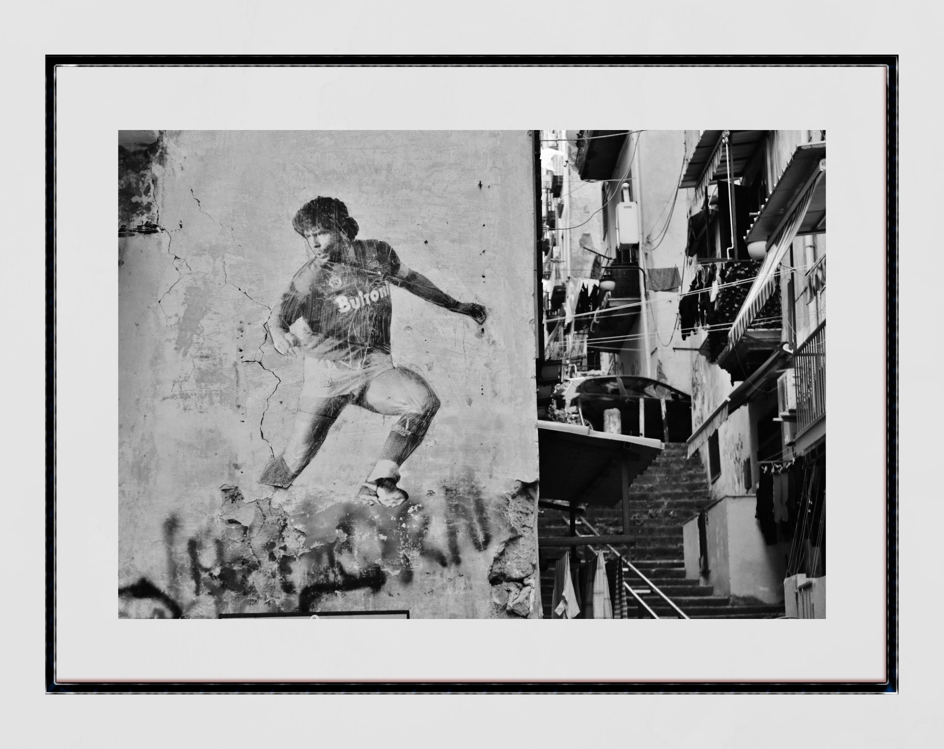 This photography print of street art of Maradona in Naples displays an image of him playing for Napoli. We stumbled upon the Maradona art in a back lane of Naples amid the urban backdrop of Italy's grittiest city.