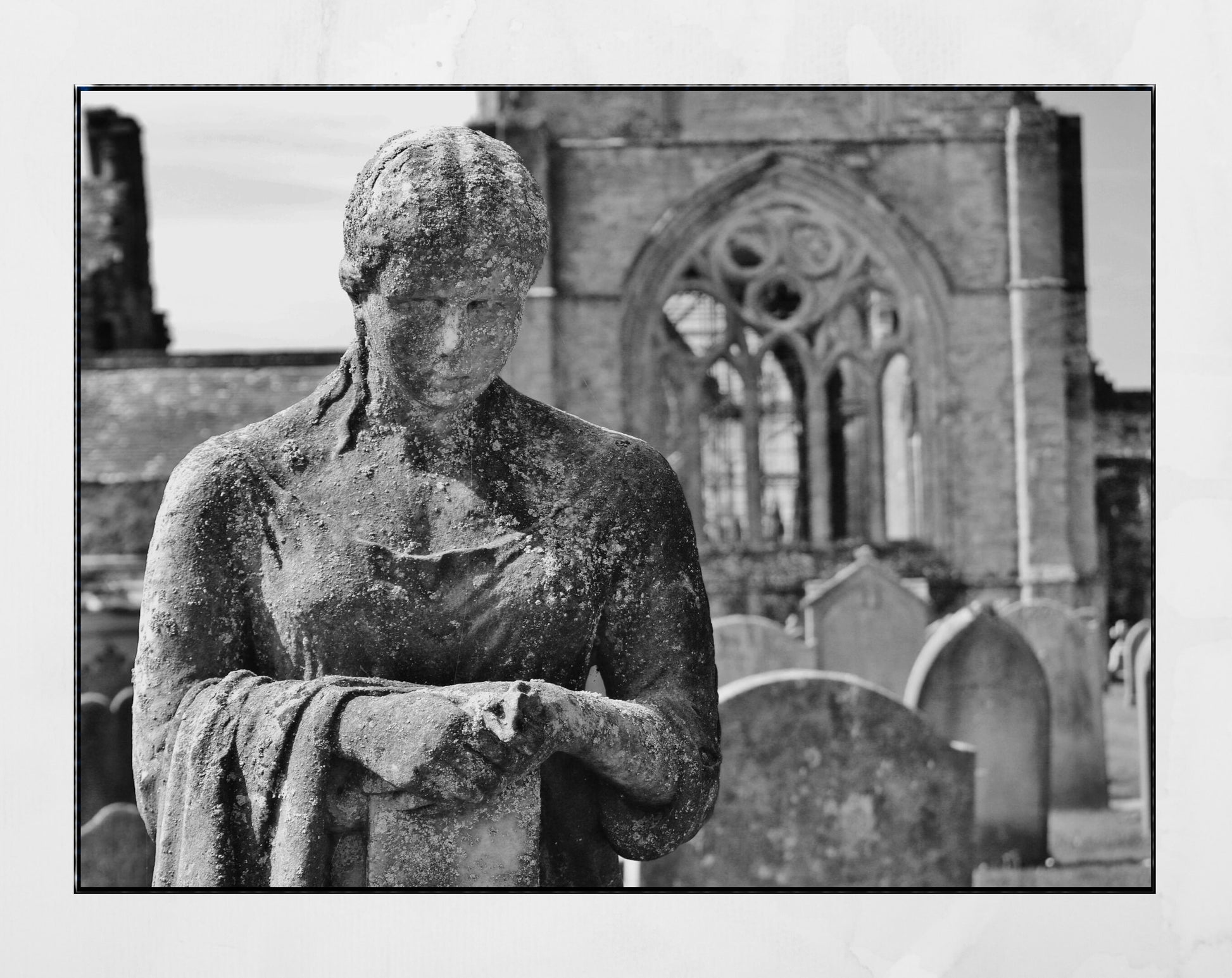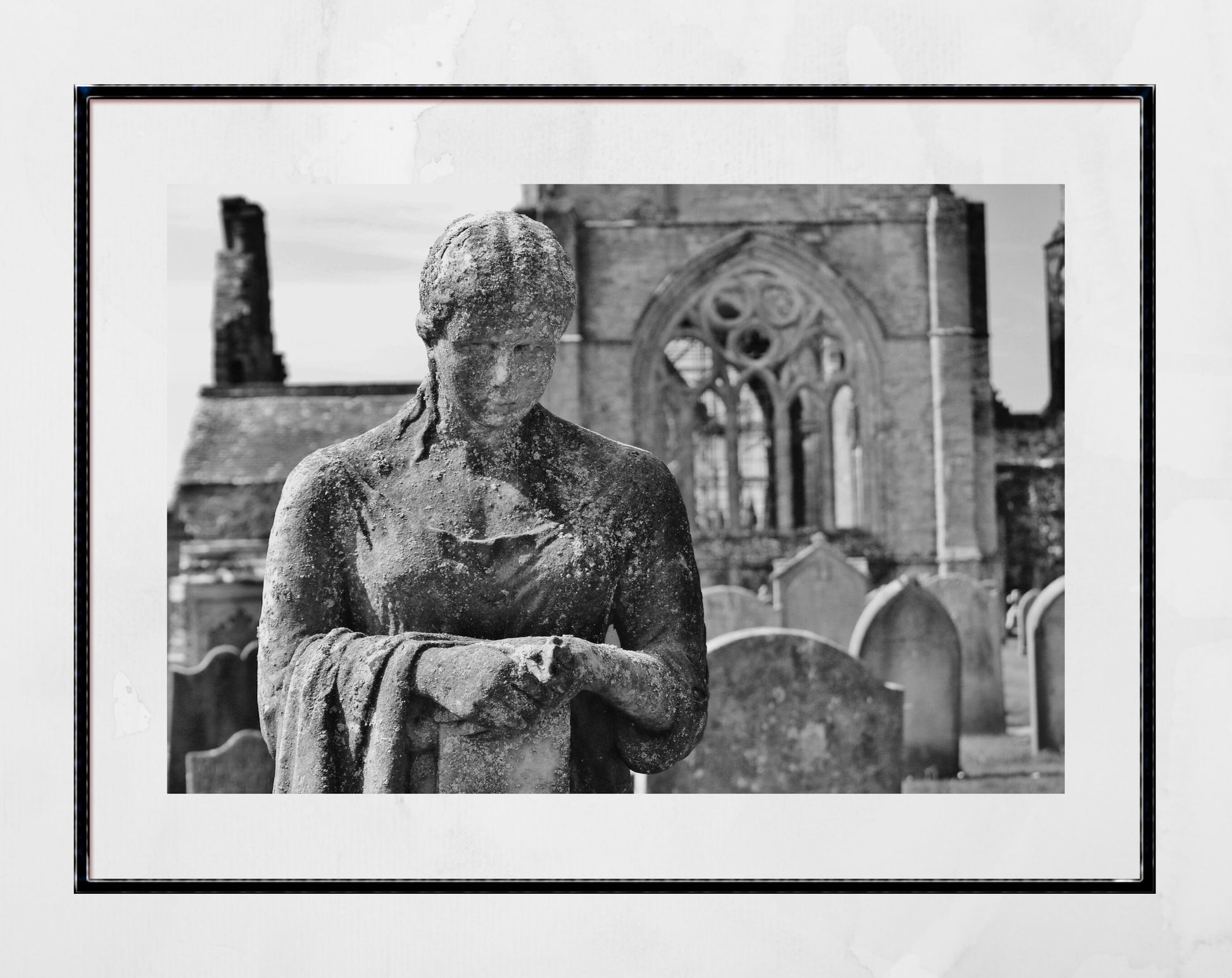 Dumfries Scotland Poster Sweetheart Abbey Graveyard Black And White Photography Print