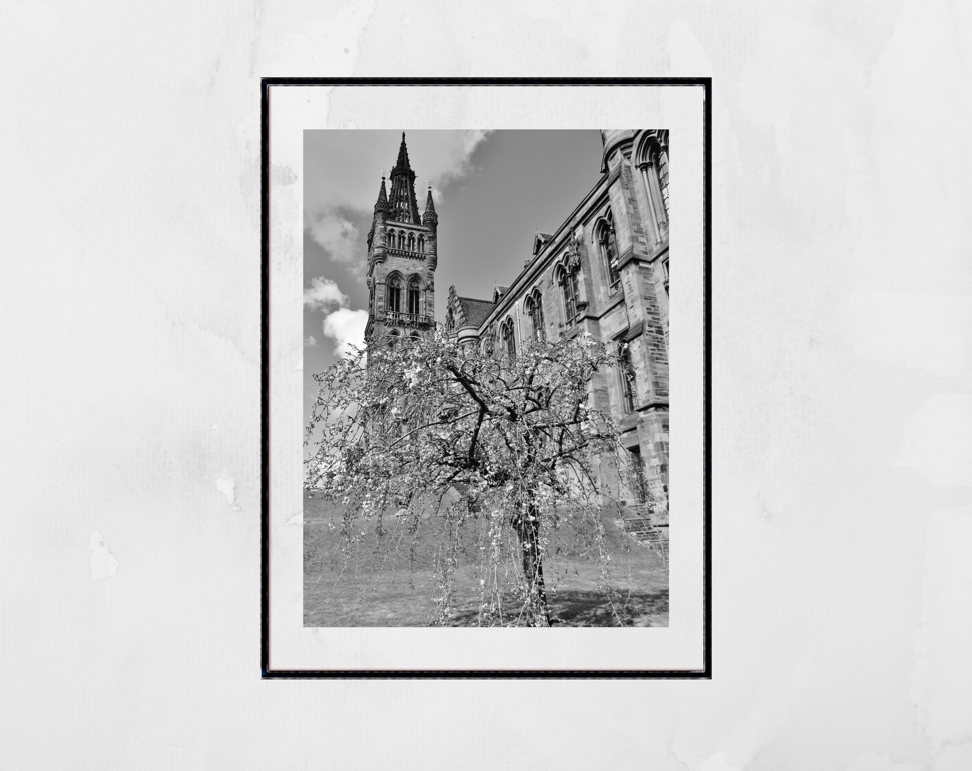 Glasgow University Black And White Photography Print Cherry Blossom Tree Wall Art