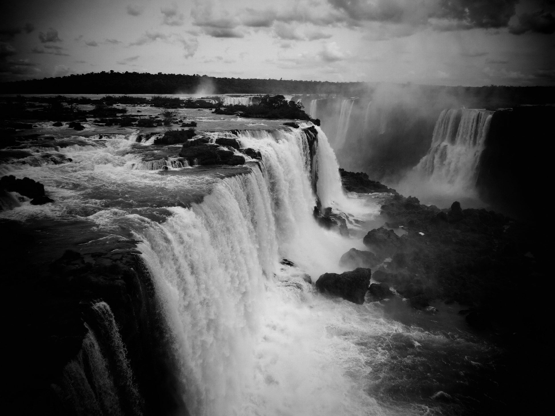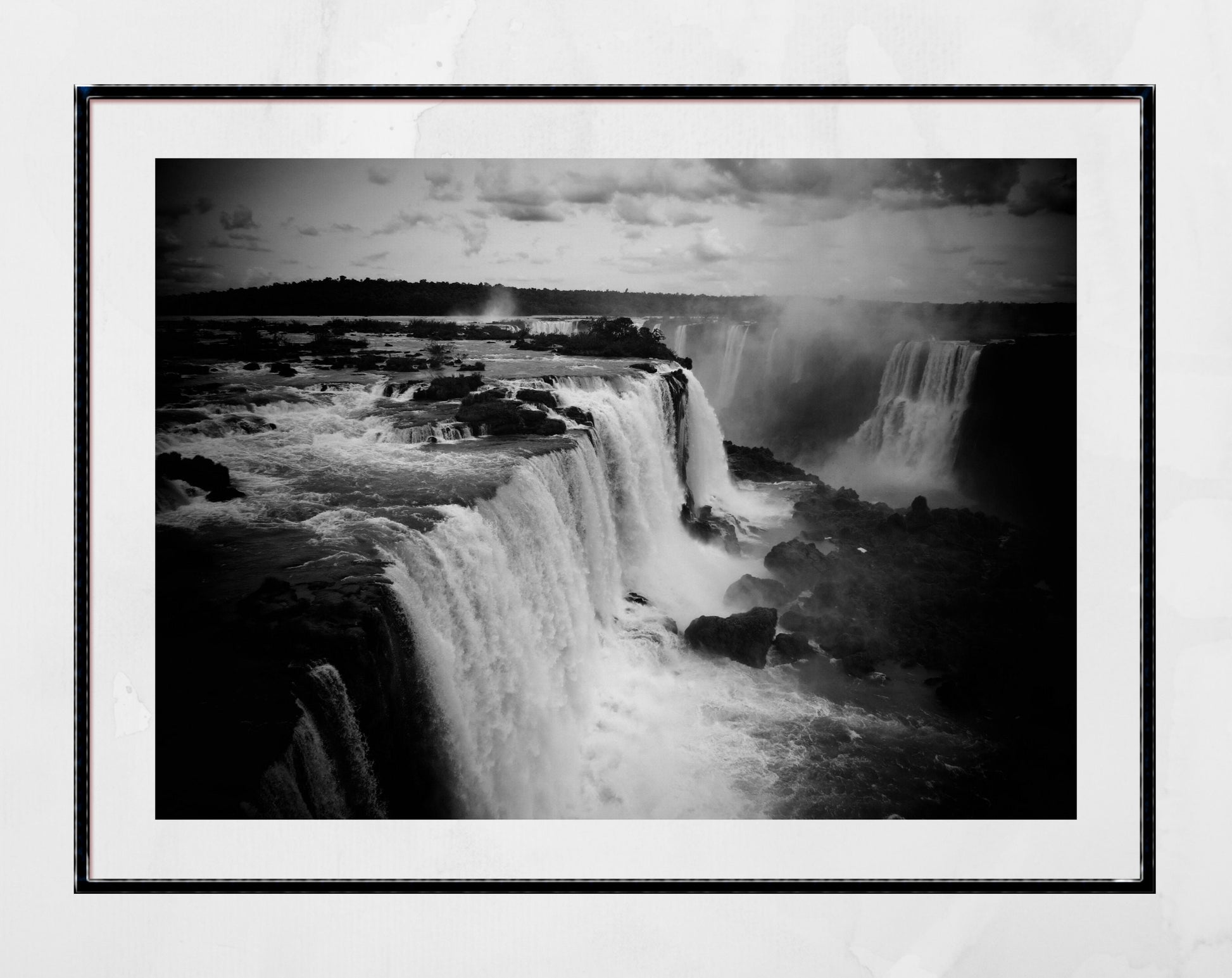 This black and white photography print shows the magnificent Iguazu Falls in Brazil.