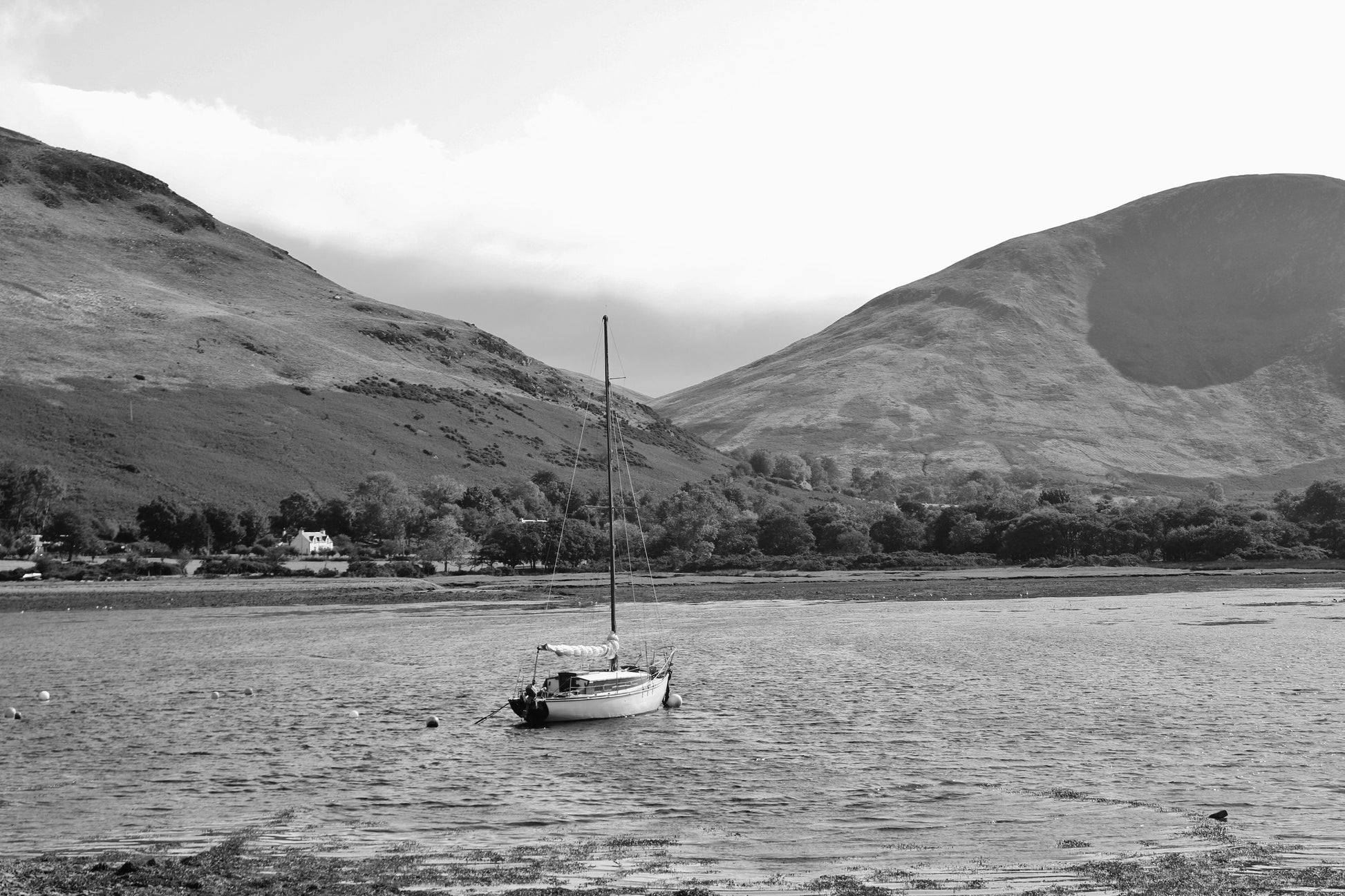 Isle of Arran Lochranza Scotland Landscape Black And White Photography Poster