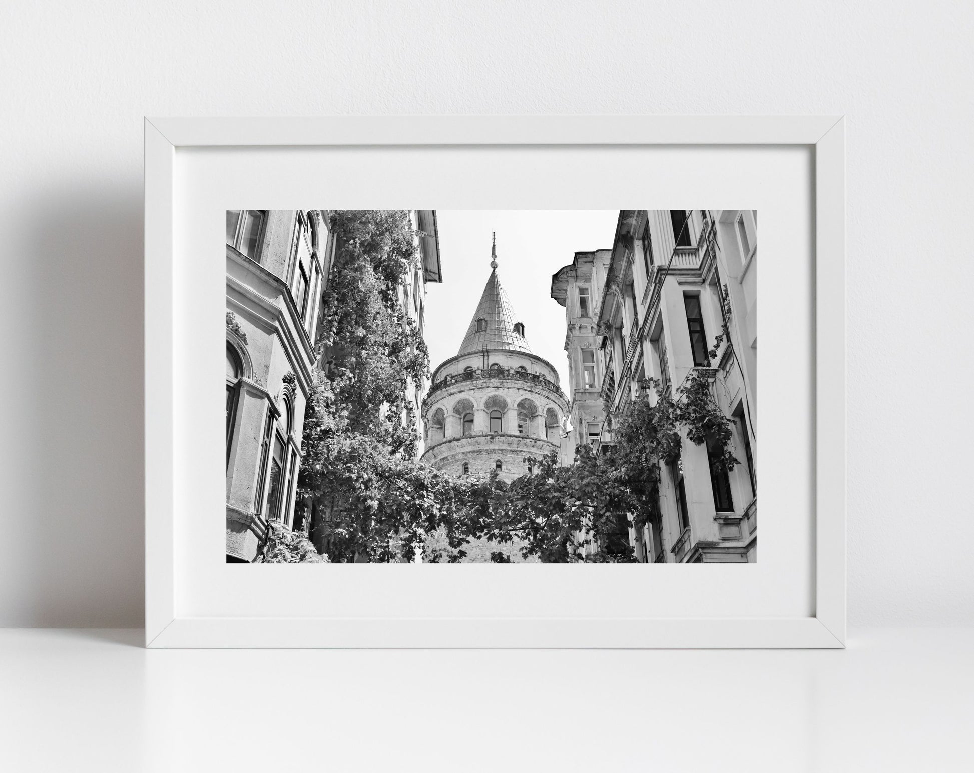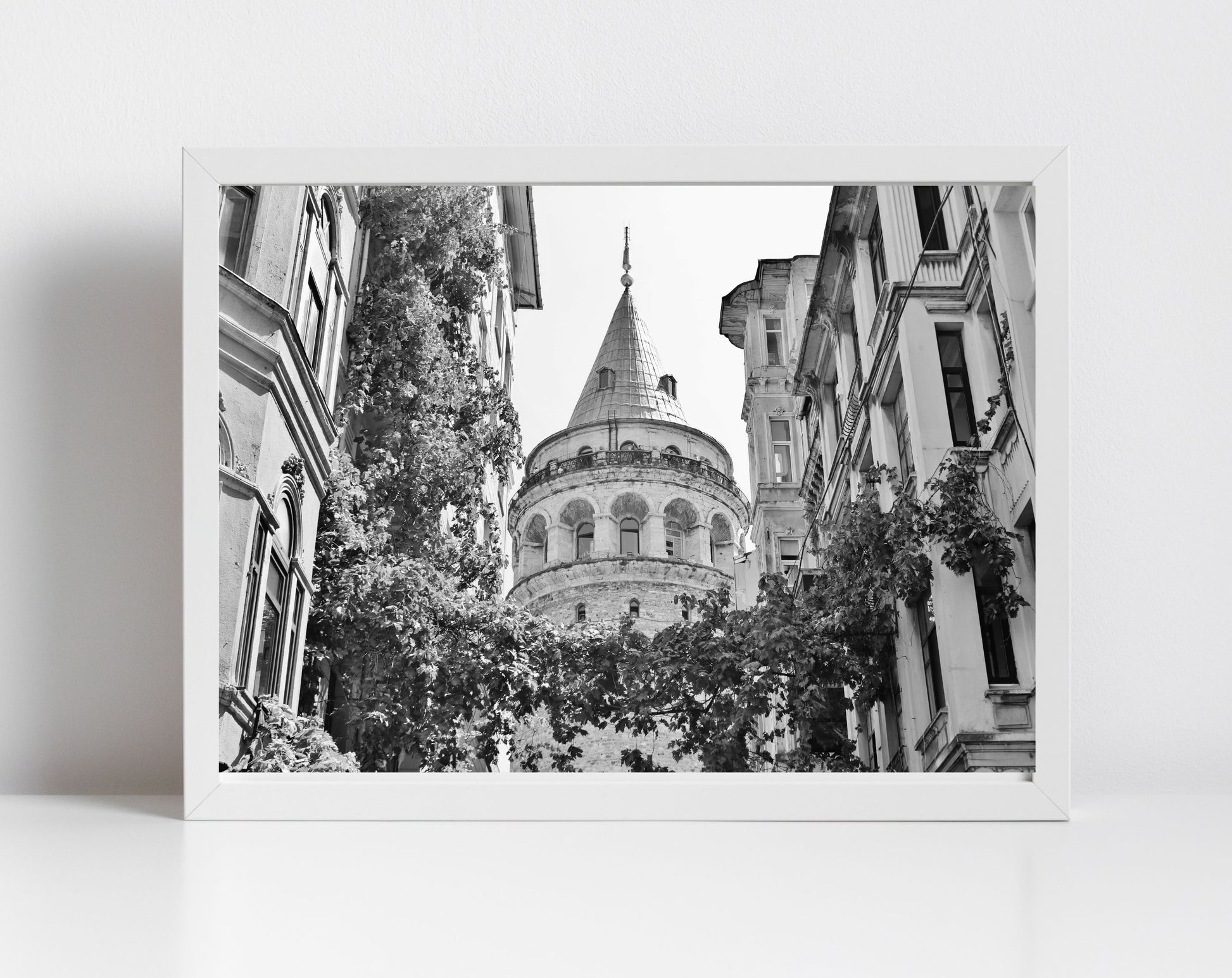 Istanbul Galata Tower Black And White Photography Print Wall Art