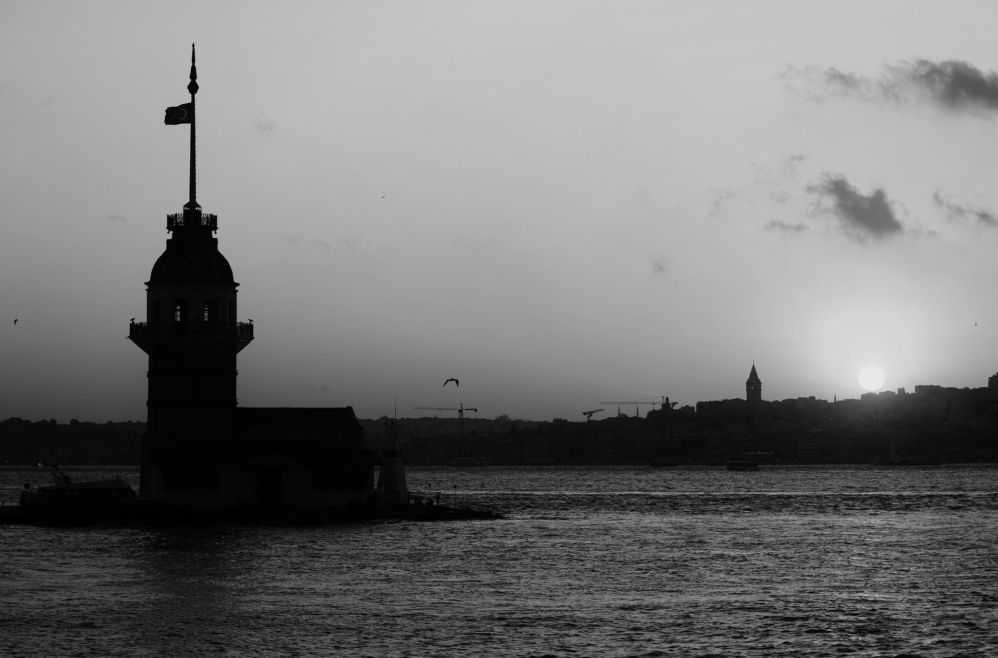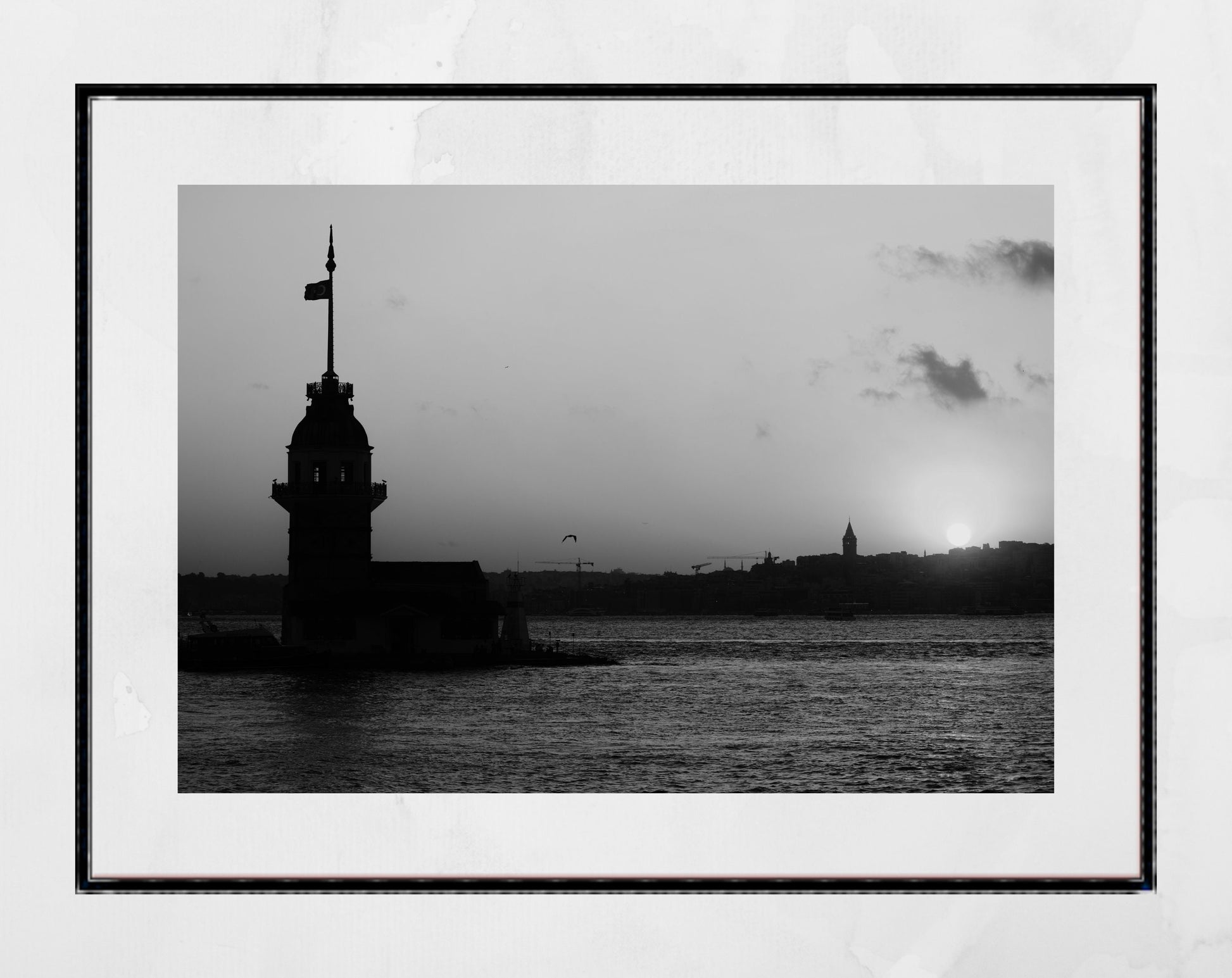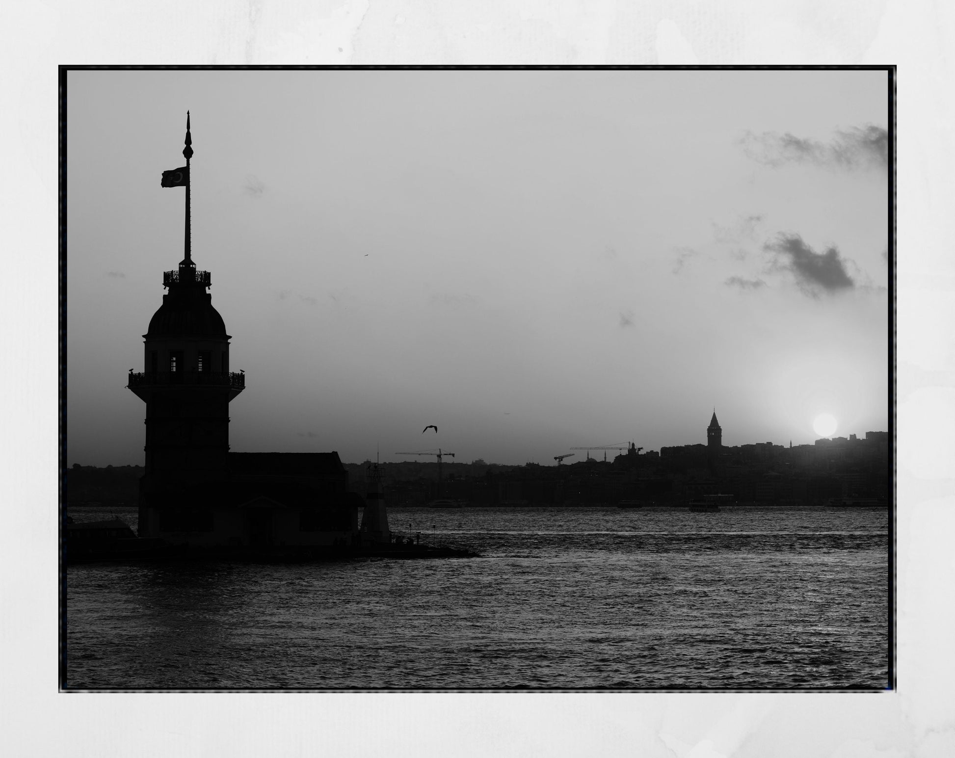 Istanbul Maiden's Tower Sunset Black And White Photography Print