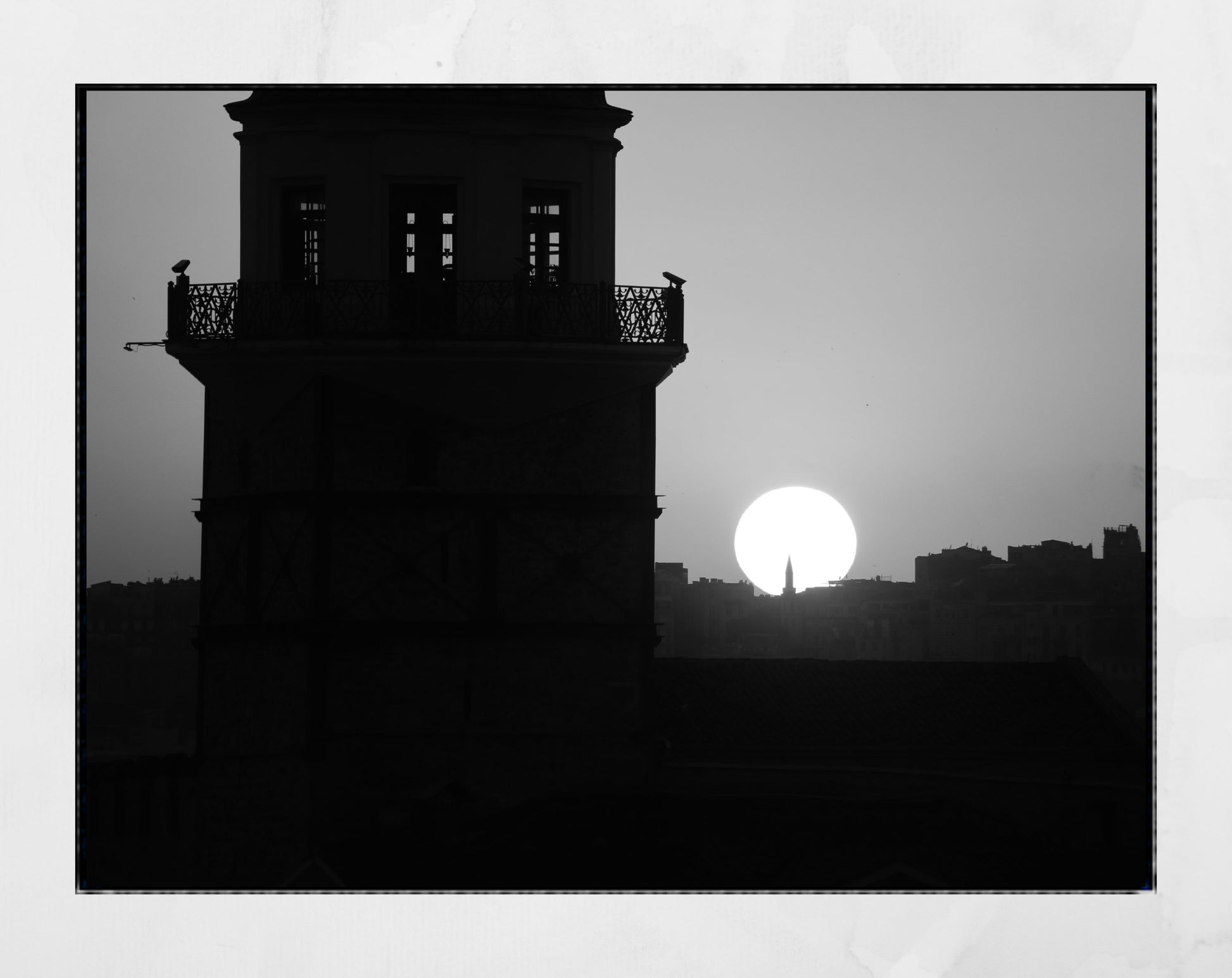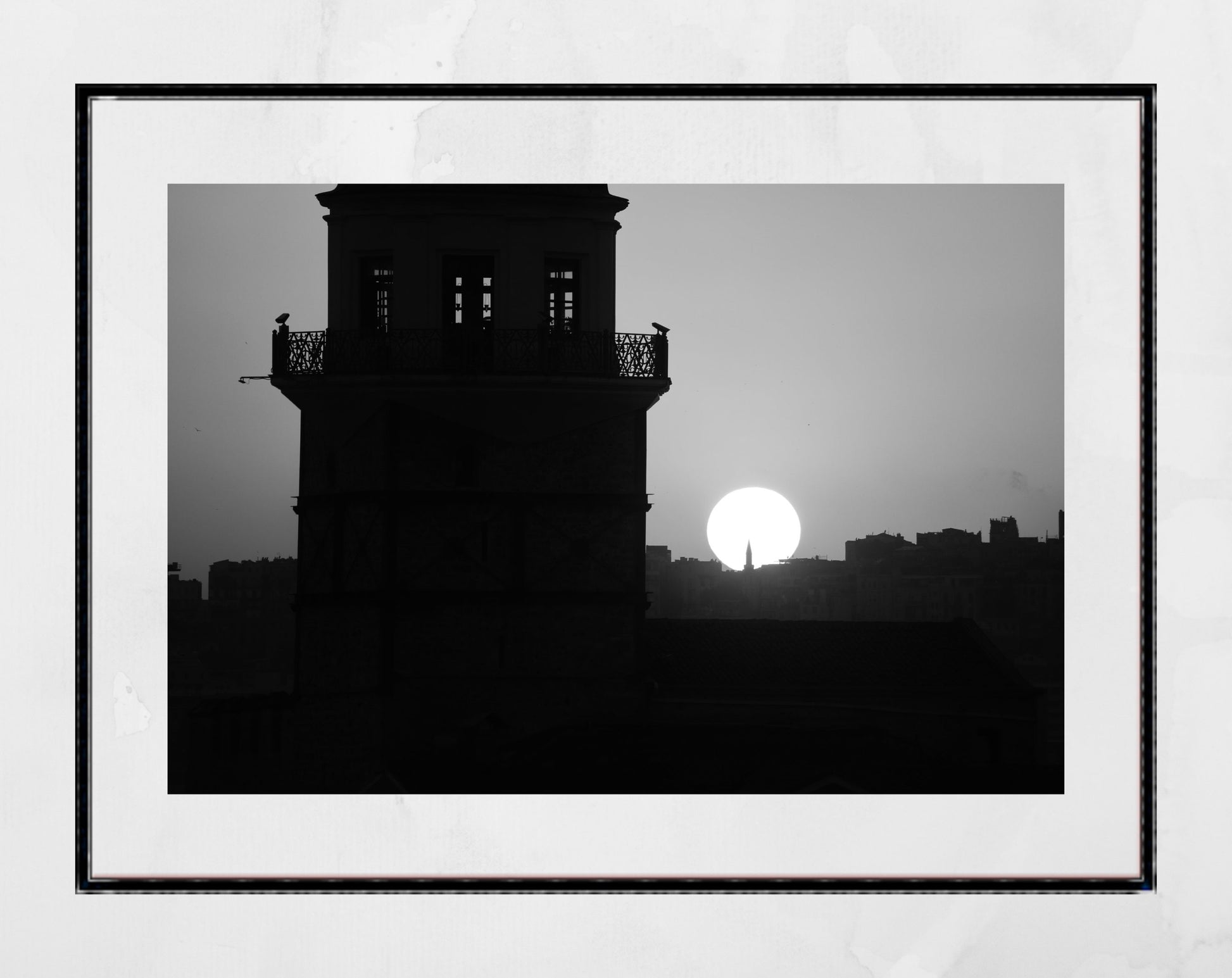 Istanbul Maiden's Tower Sunset Black And White Photography Print Poster