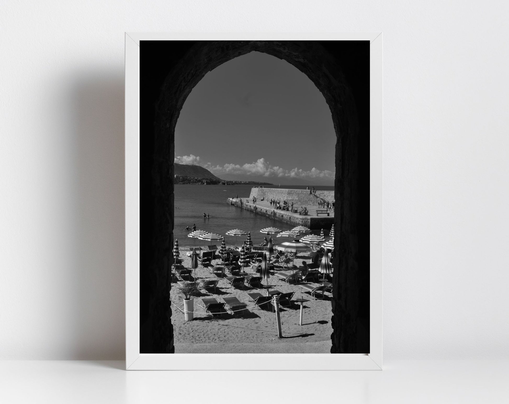 Italian Beach Black And White Photography Cefalù Sicily Print