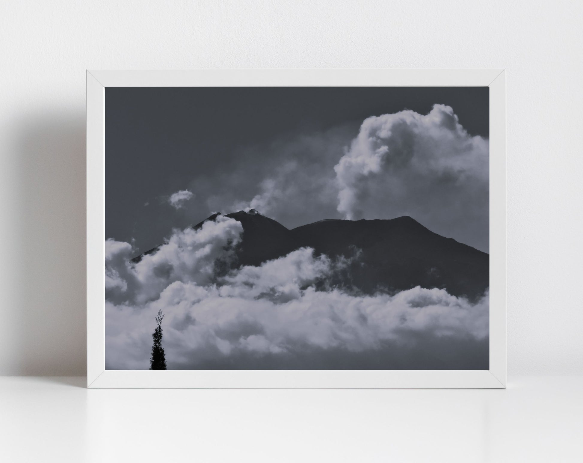 Mount Etna Poster Volcano Art Black And White