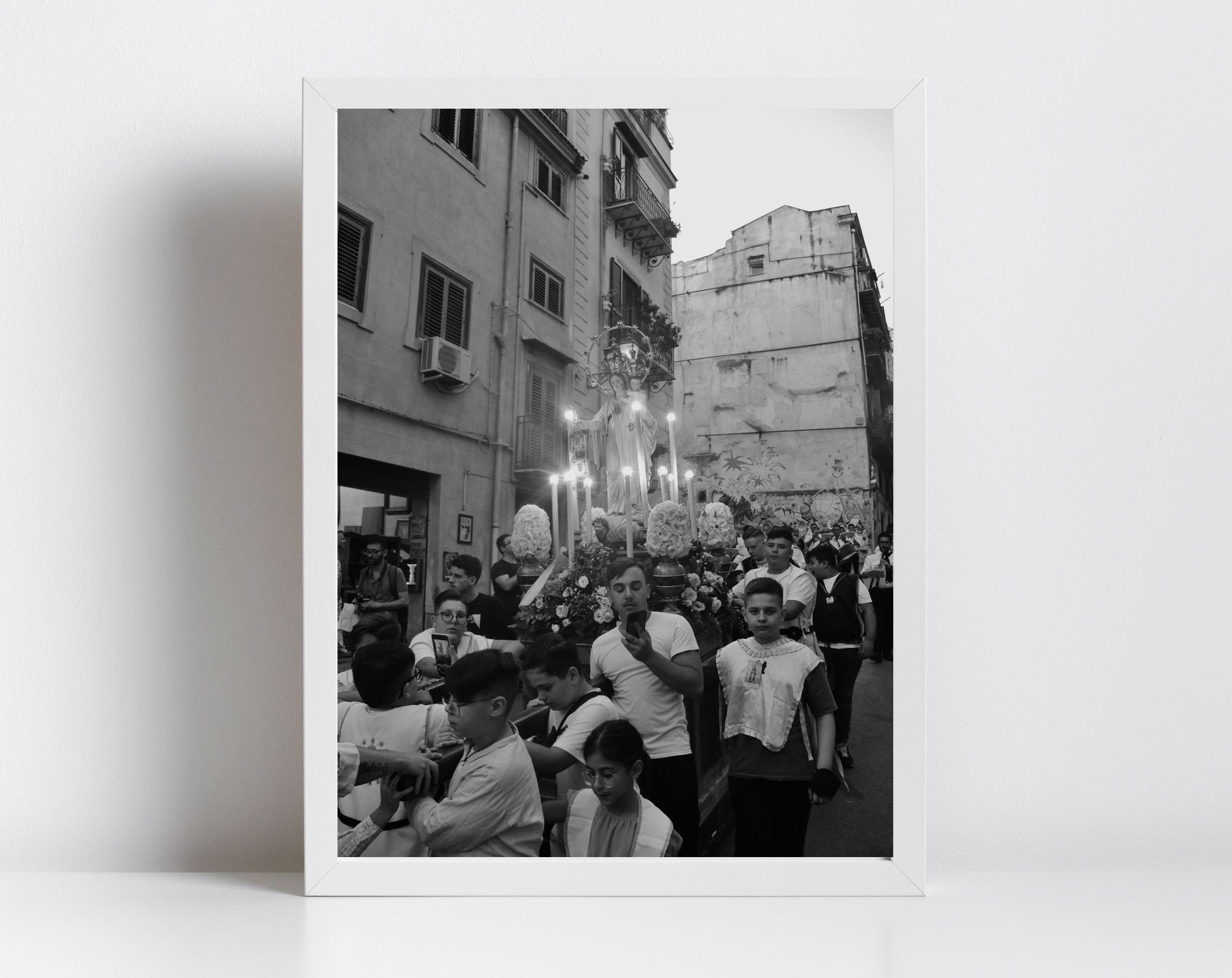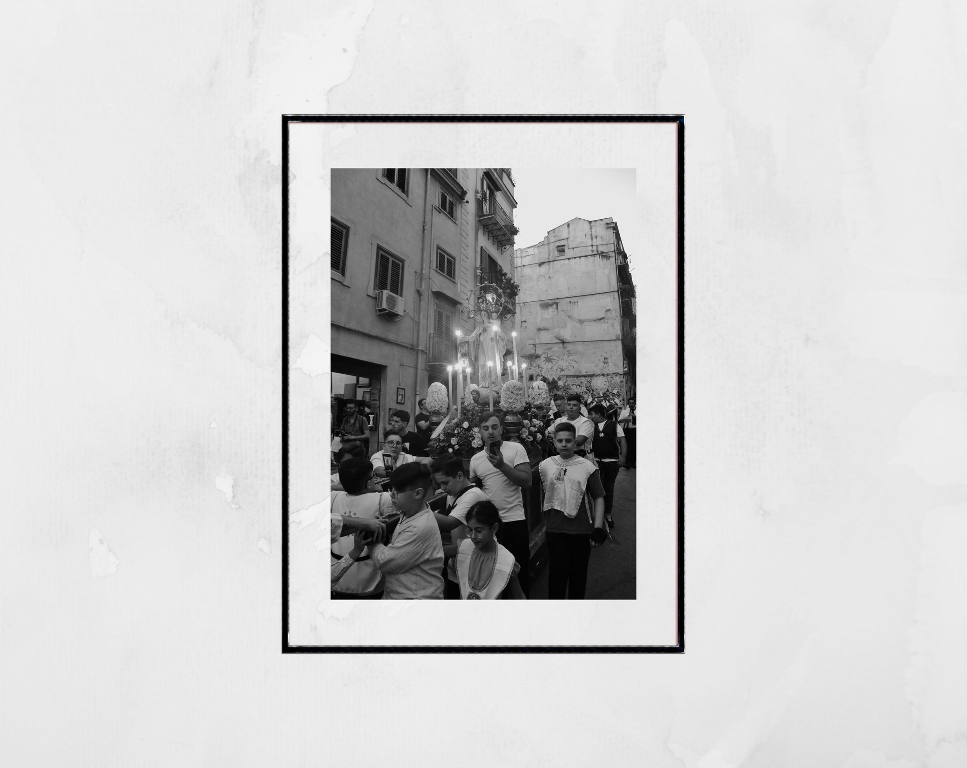 A procession of a statue of Madonna through the streets of Sicily's Palermo reflecting the fervent devotion many Italians still demonstrate to their Catholic religion.