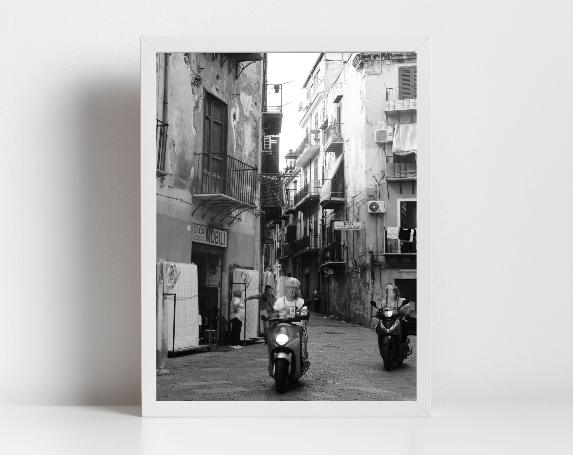 Palermo Sicily Black And White Print Street Photography Vespa Poster Italy Art
