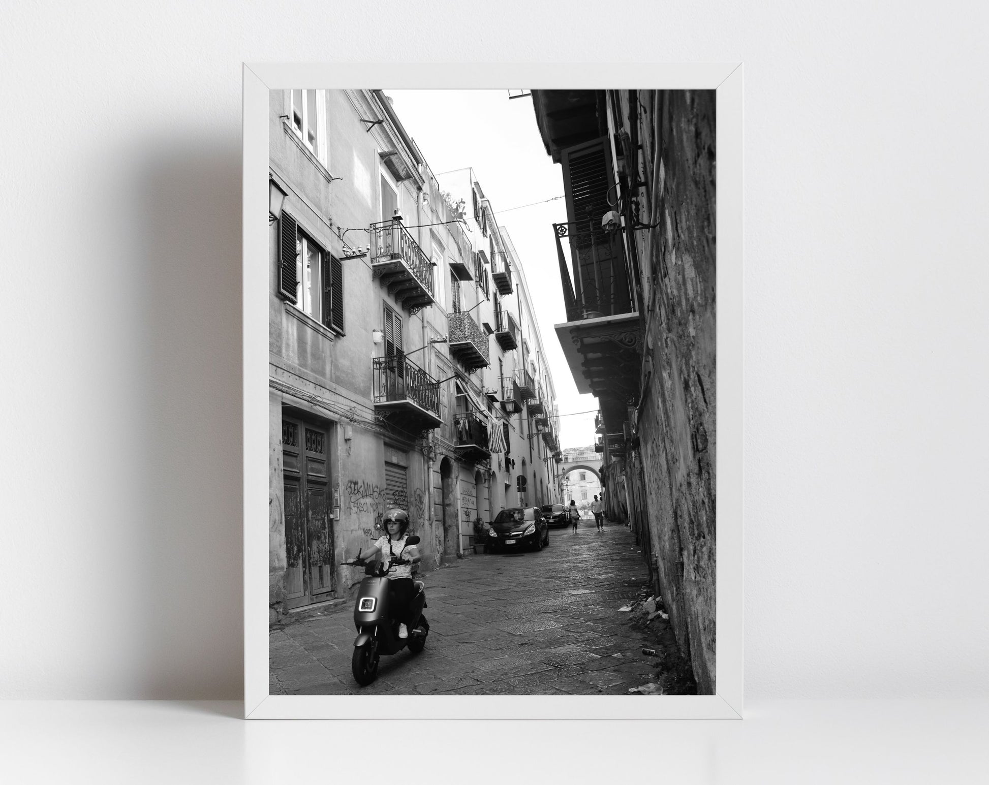 Palermo Sicily Black And White Print Street Photography Woman On Moped Poster