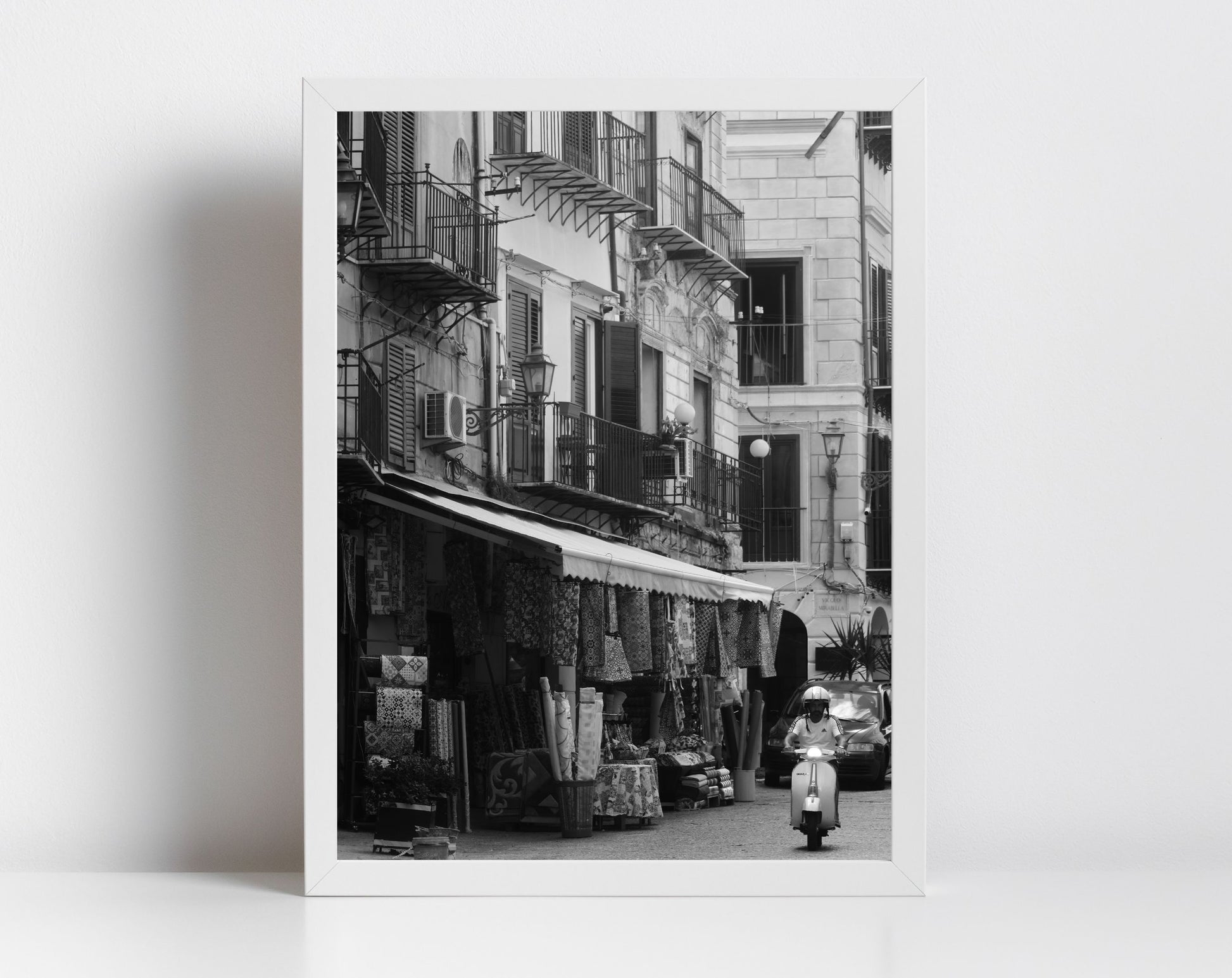 Palermo Sicily Black And White Print Vespa Poster Street Photography