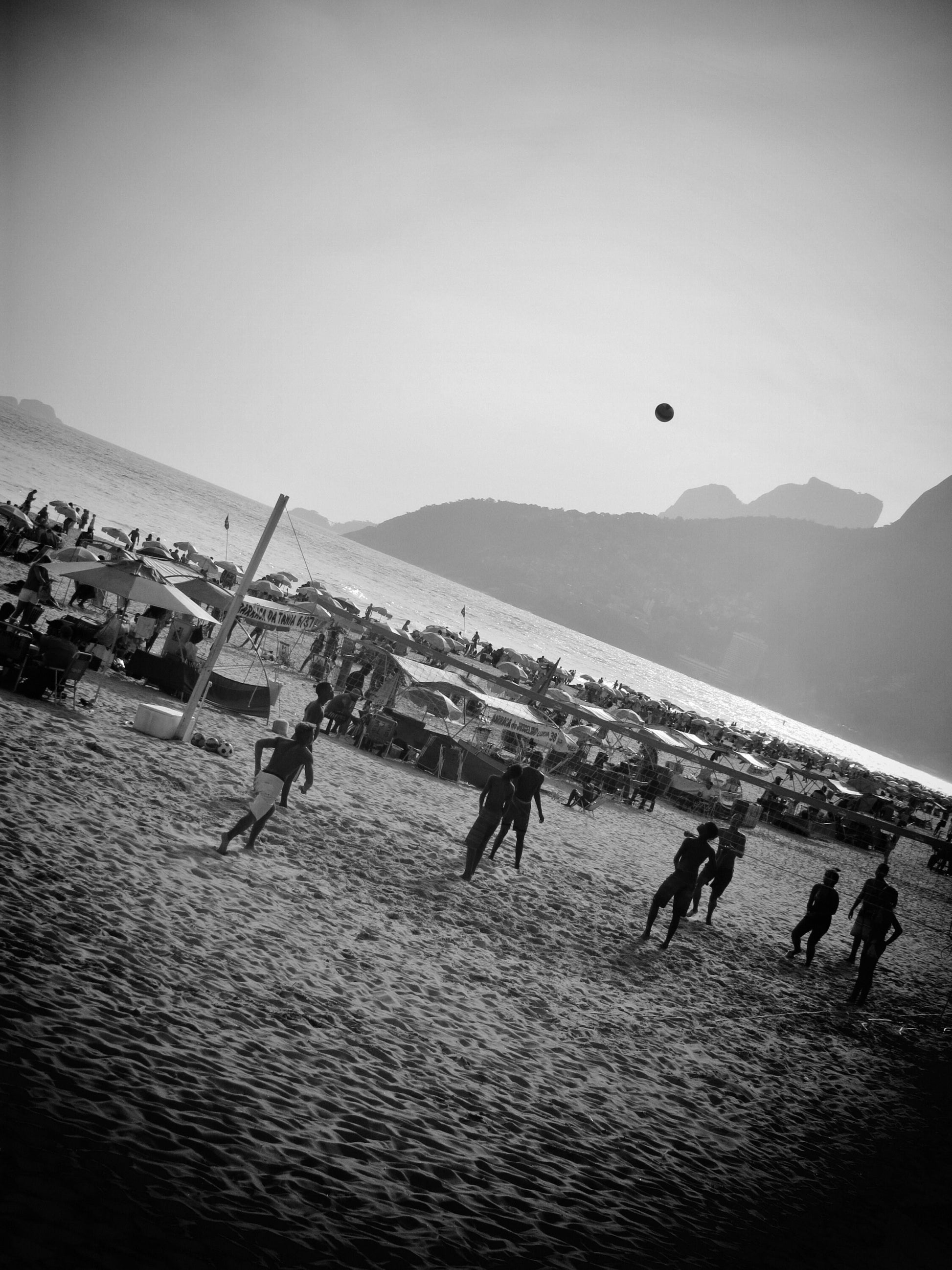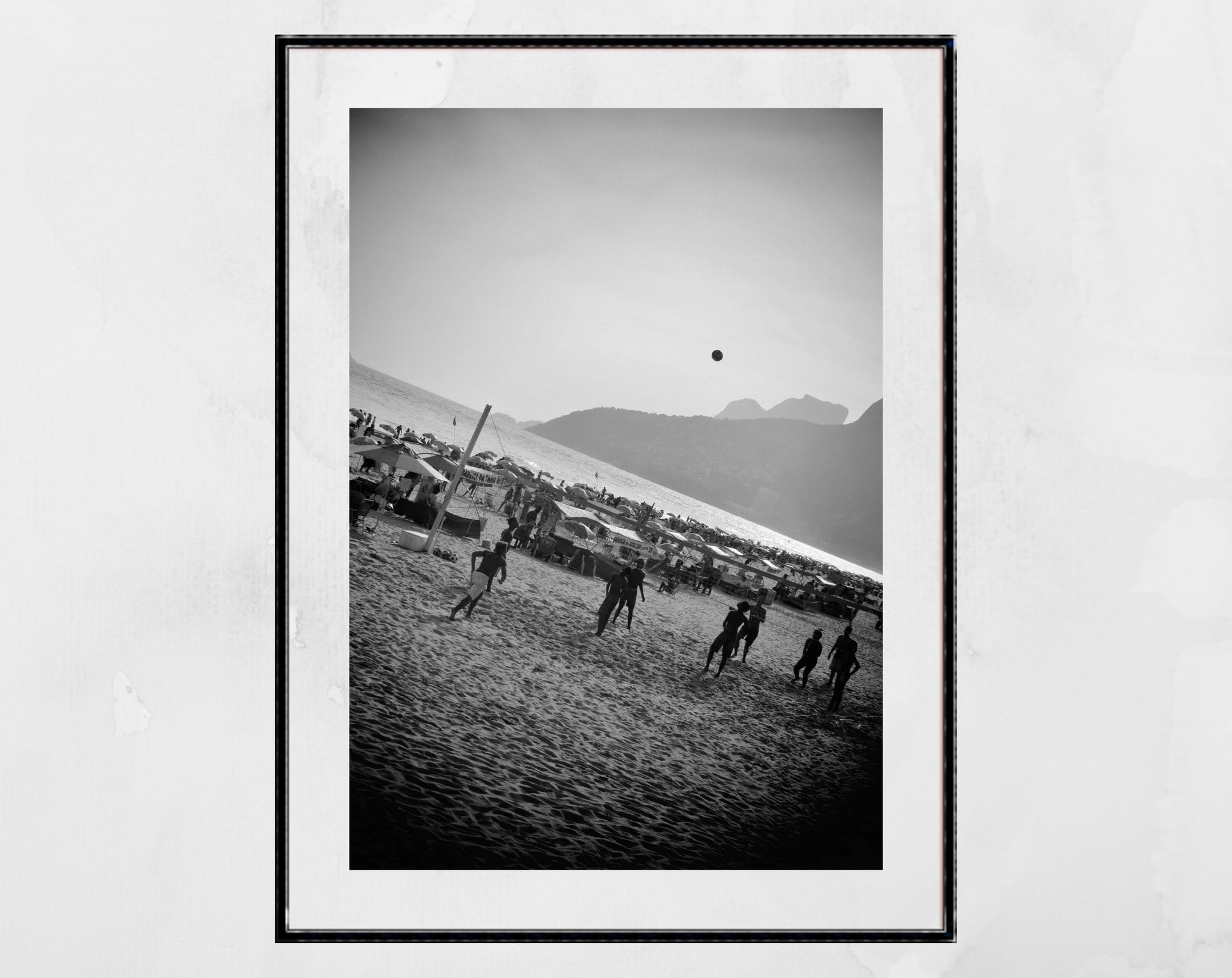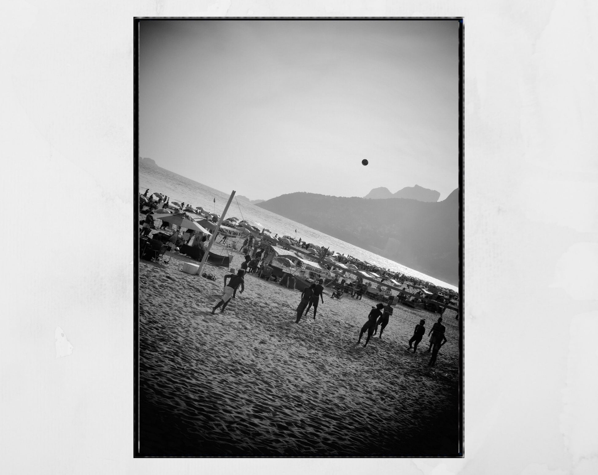 This black and white photography print shows a game of volleyball on Ipanema Beach in Rio de Janeiro. It is available in a variety of sizes, from small to extra large, and is striking displayed on its own or as part of a gallery wall.
