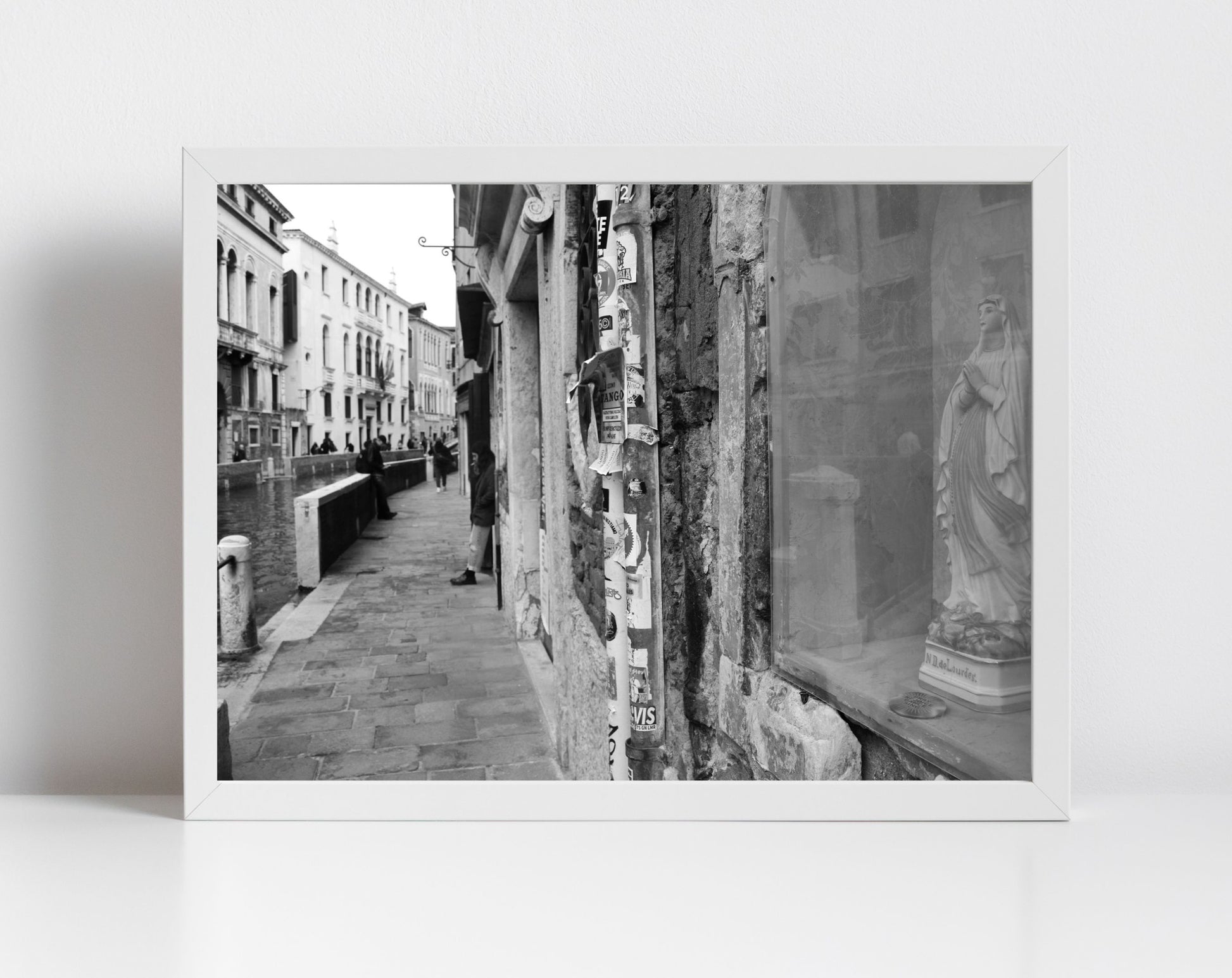While walking down San Trovaso in Venice I saw this young woman pausing beside a building to smoke a cigarette. The scene, framed by the shrine to Madonna, felt like a slice of authentic Italian life