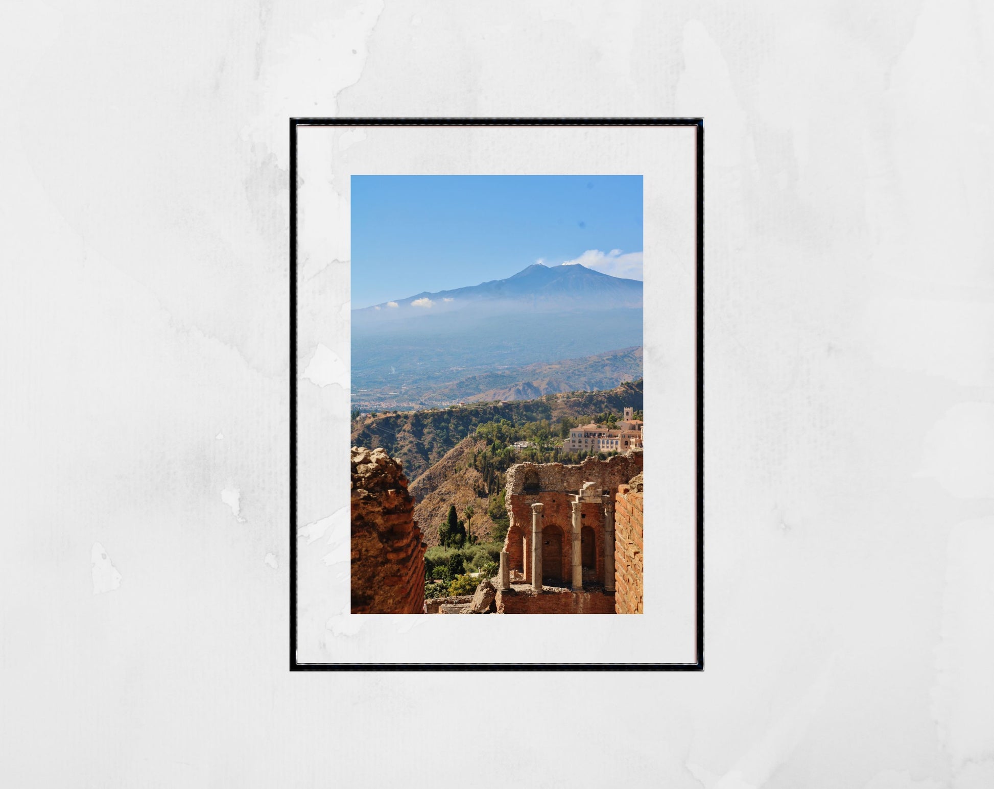 Built in the 3rd century BC, Teatro Antico di Taormina is dramatically perched on the clifftop of Taormina, Sicily, with Mount Etna, the largest active volcano in Europe, overlooking it from the horizon beyond.