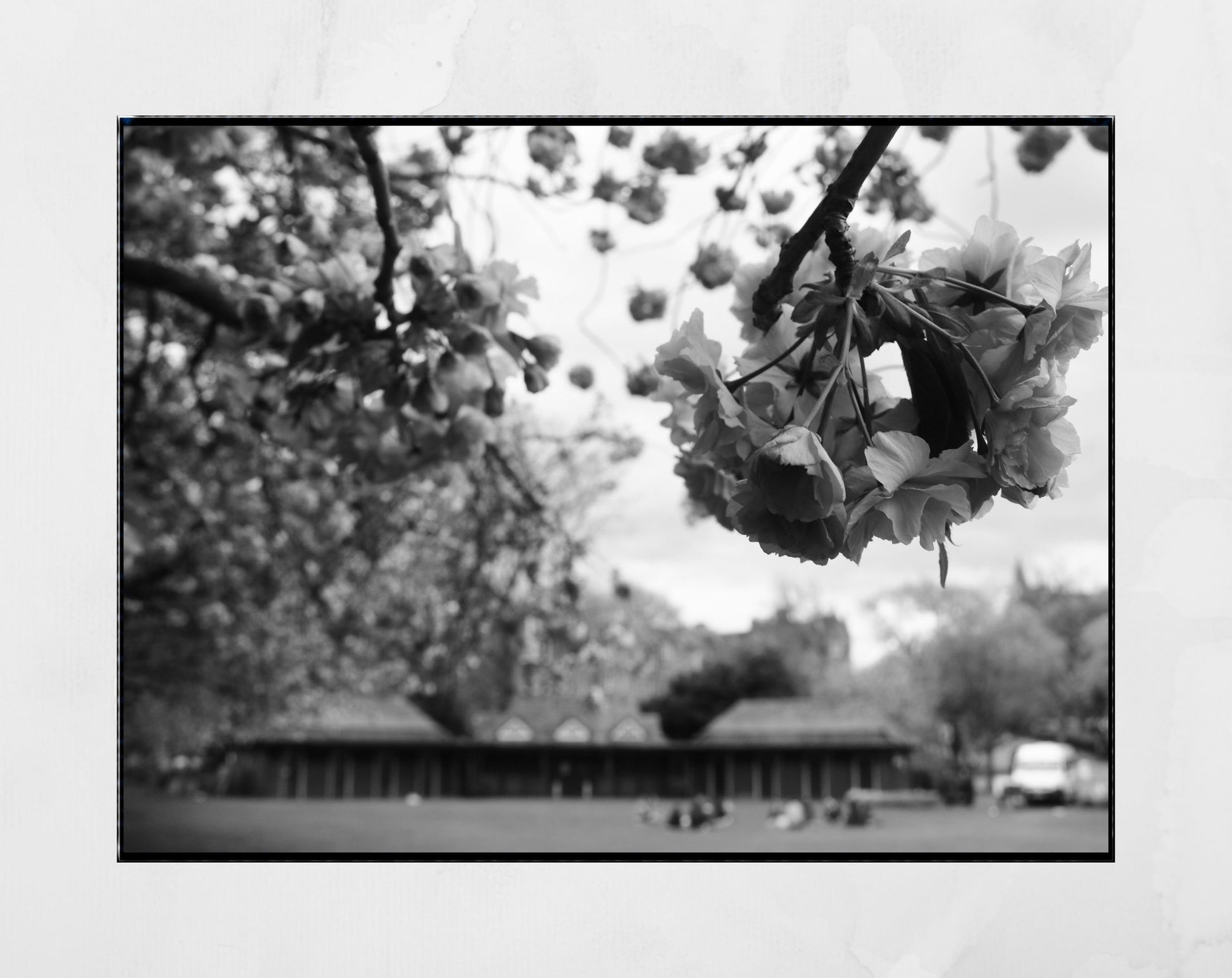 The Meadows Edinburgh Cherry Blossoms Black And White Photography Print