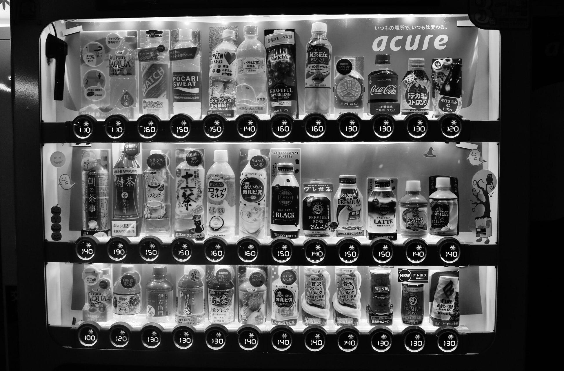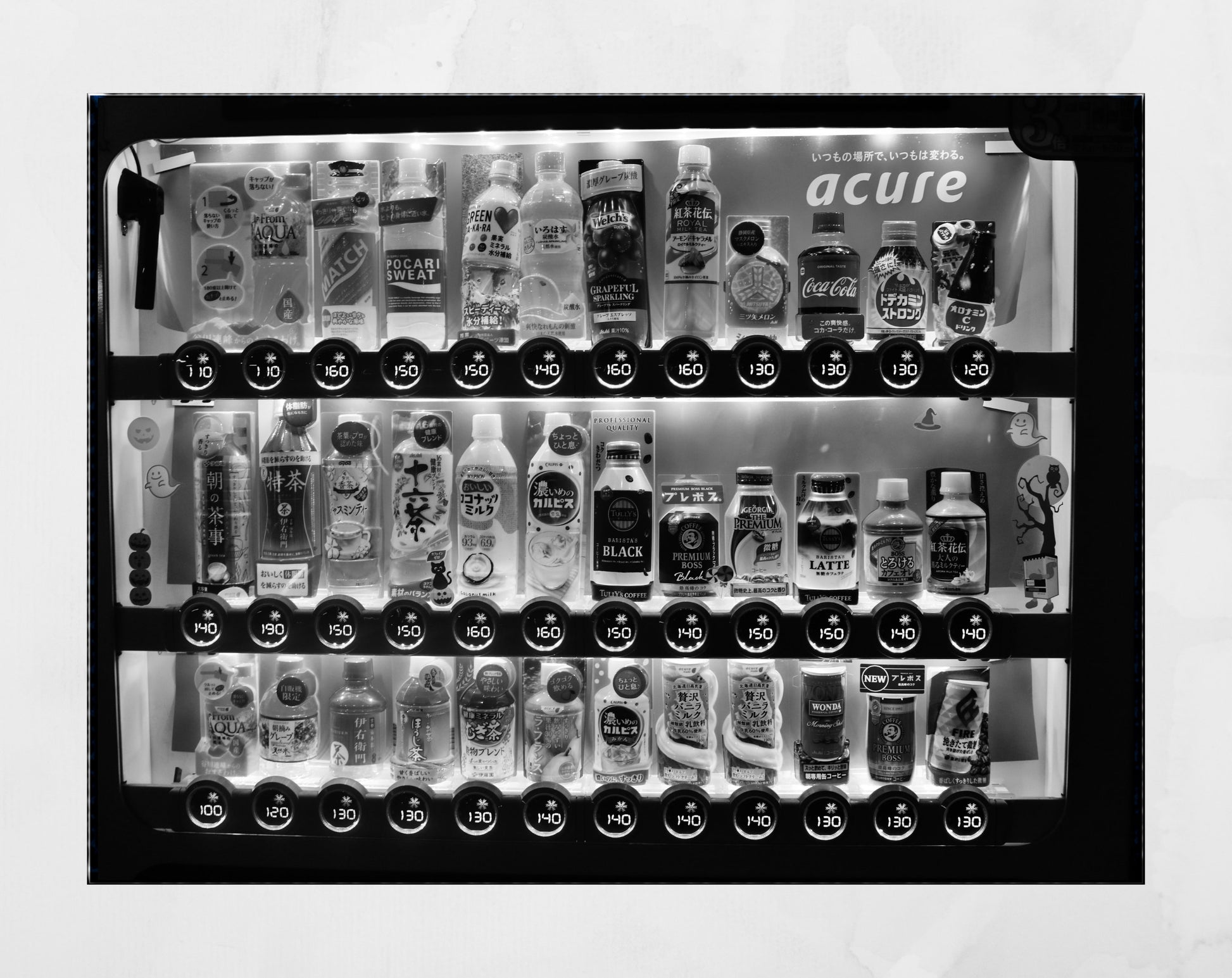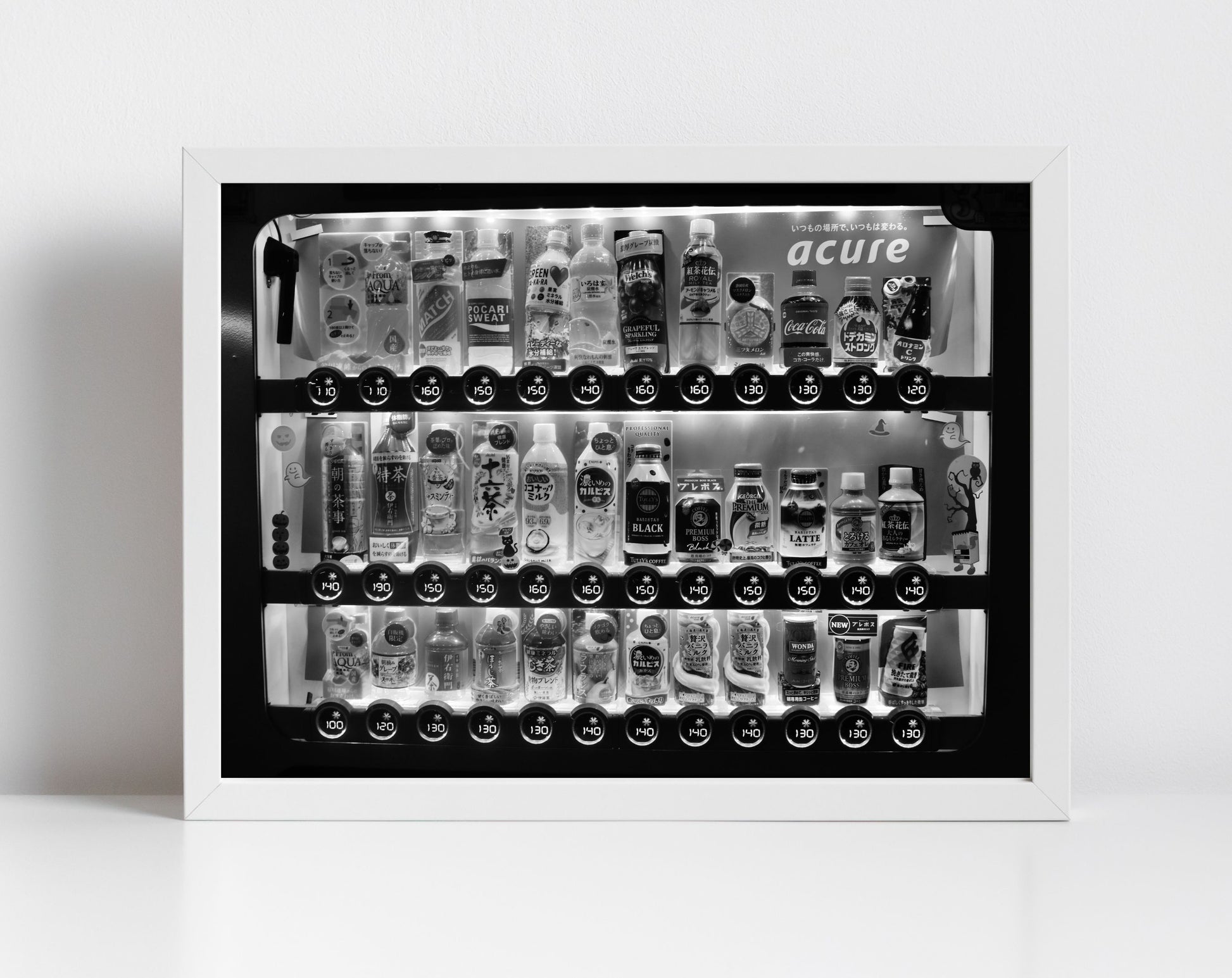Tokyo Japanese Vending Machine Black And White Photography Print
