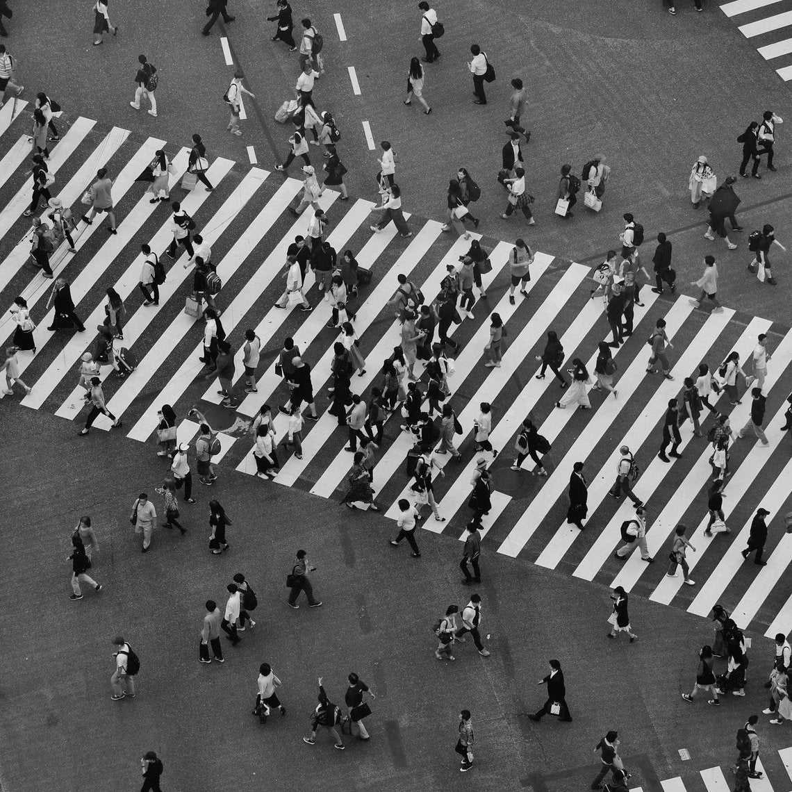 * The iconic "scramble" at Shibuya Crossing.