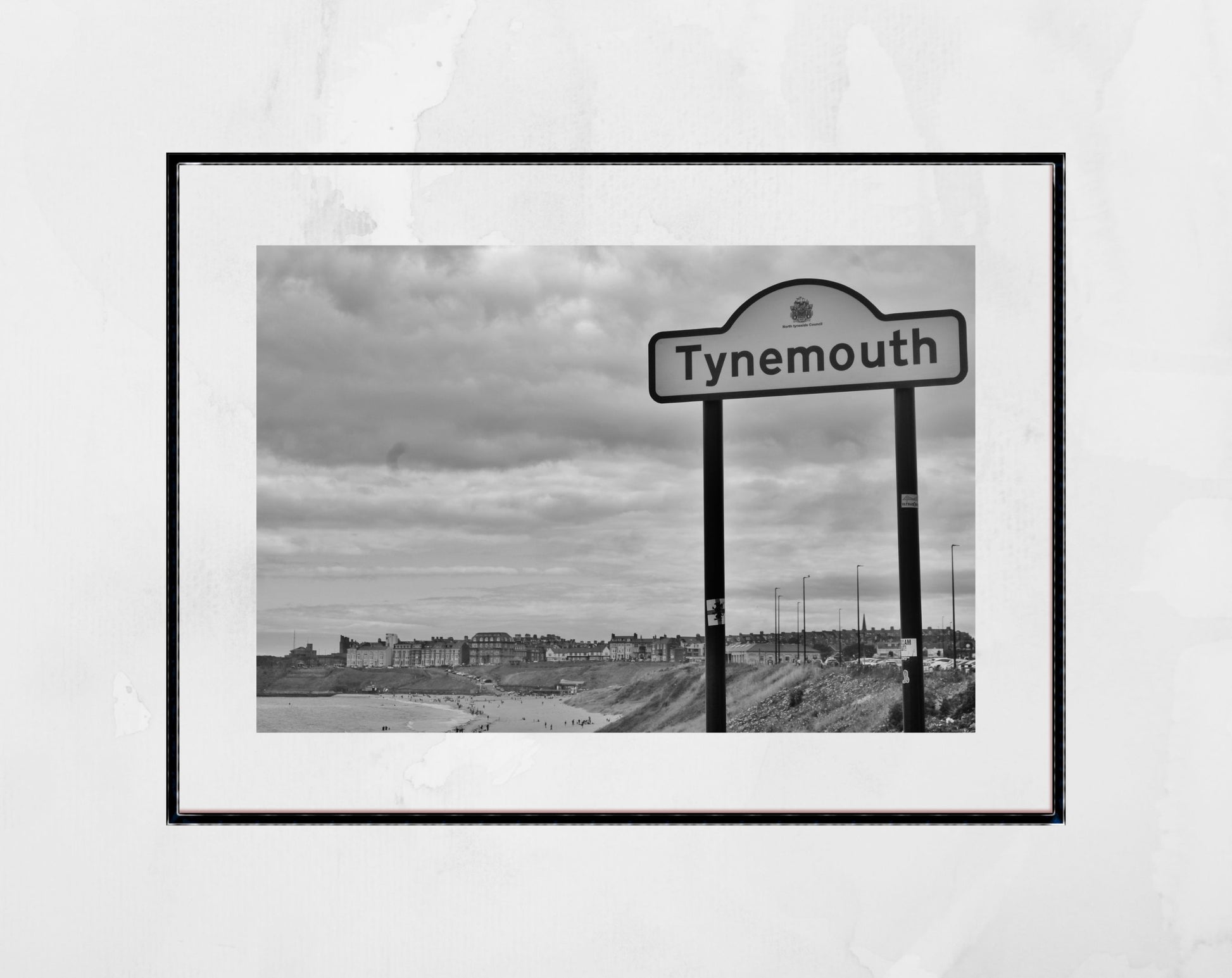 A sign for the town of Tynemouth on the North East England sweeping coast of Northumberland.